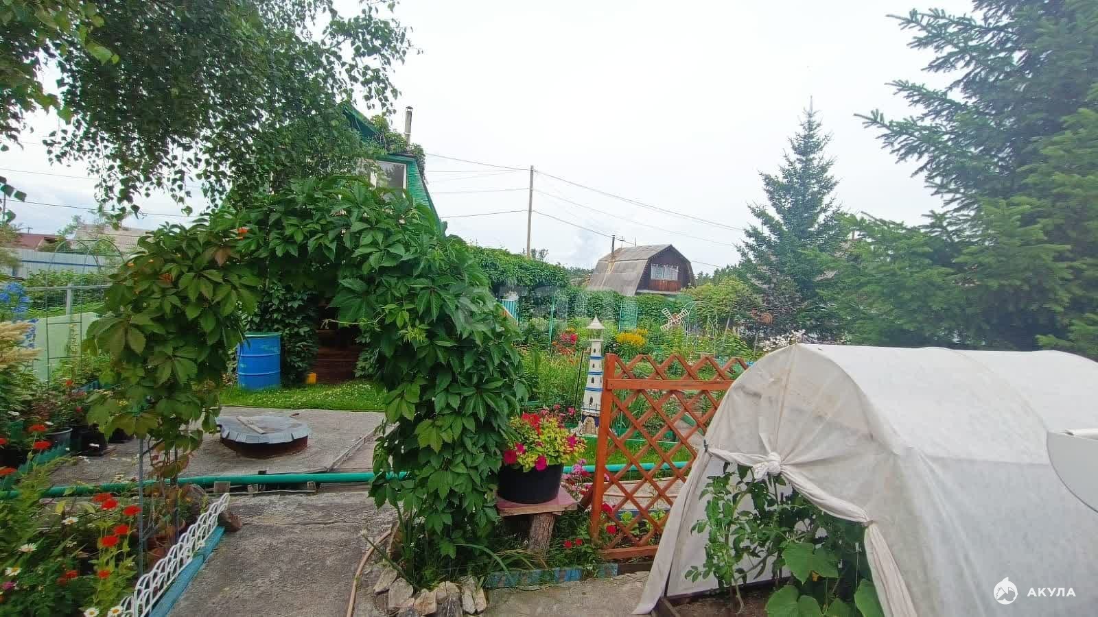 Рядом с домом находится баня с парной, отделанной липовой вагонкой, и удобный дровяник для хранения топлива. Инфраструктура участка включает алюминиевую теплицу на бетонном фундаменте, парник из поликарбоната, а также хозяйственный блок с летним душем и туалетом. Для автомобилей предусмотрена парковка на три машины с удобным заездом через собственные ворота. Электричество подведено к дому, установлен распределительный щит. Центральное летнее водоснабжение дополняется возможностью бурения скважины в удачно расположенной точке участка.