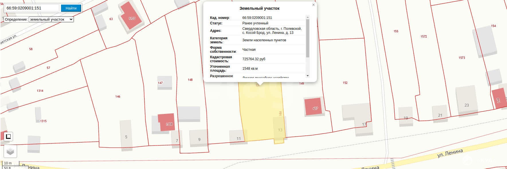 - Площадь участка