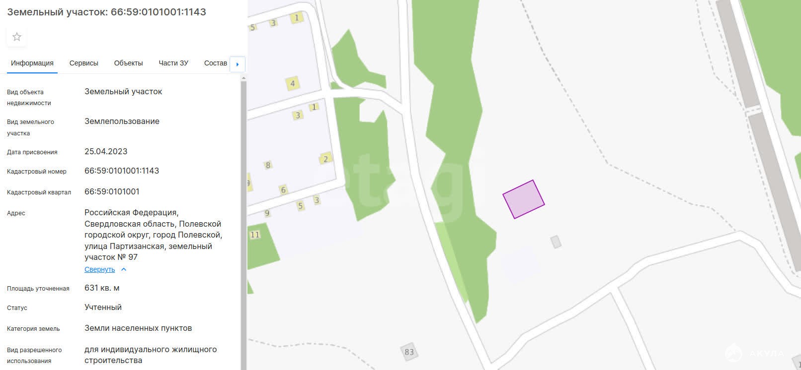- Площадь участка
