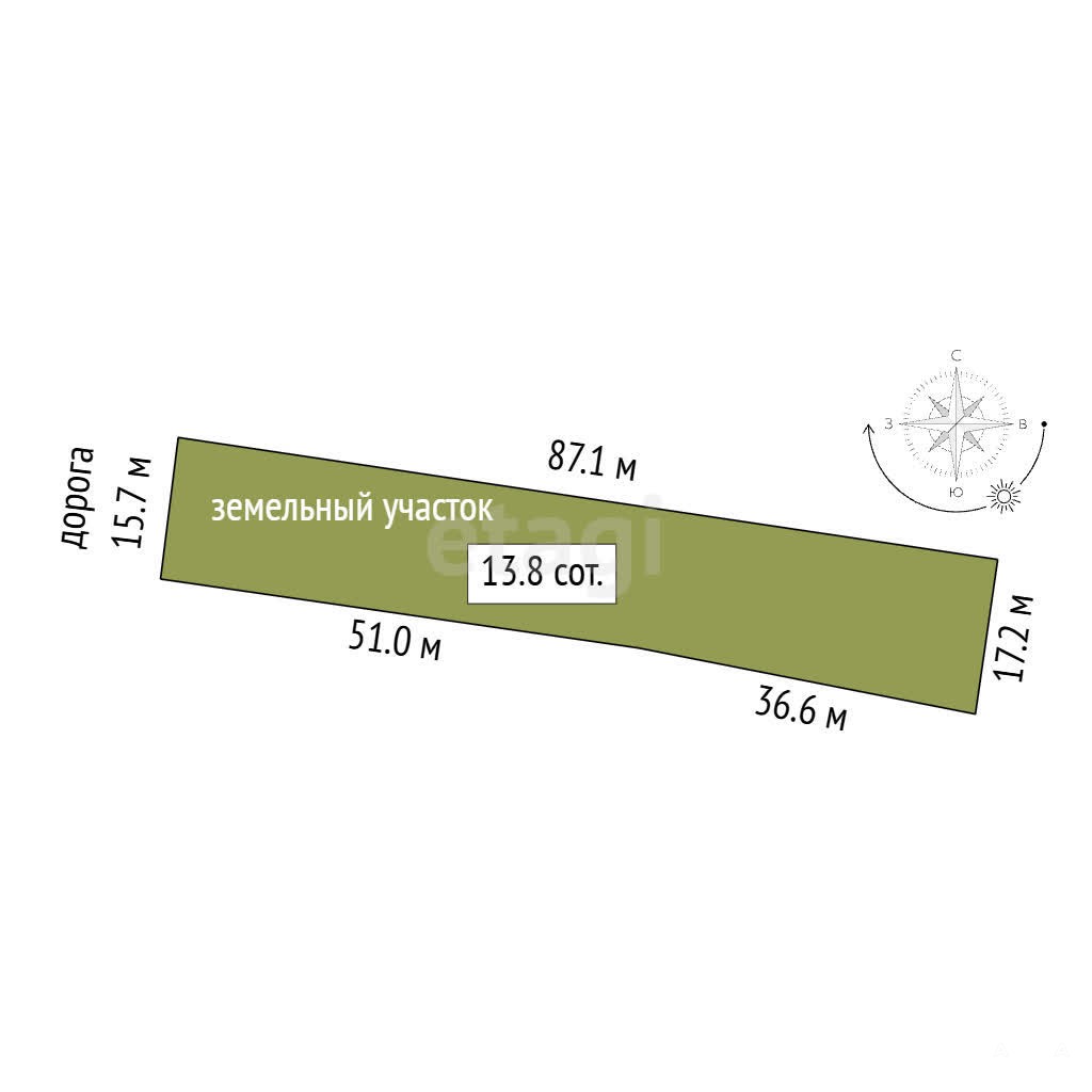 Площадь участка: 15 соток (ровный, прямоугольный)