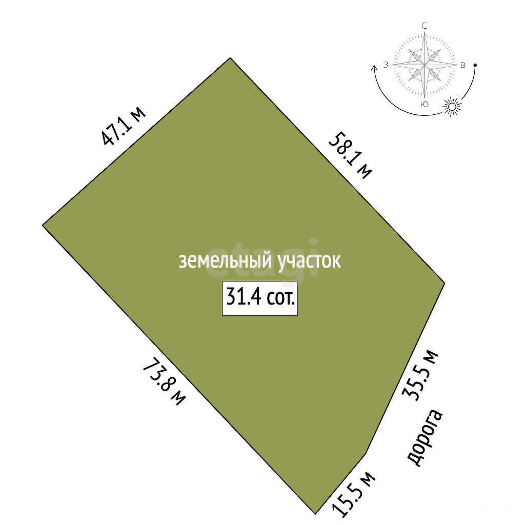 Продается земельный участок 31.4 сотки в селе Курганово!