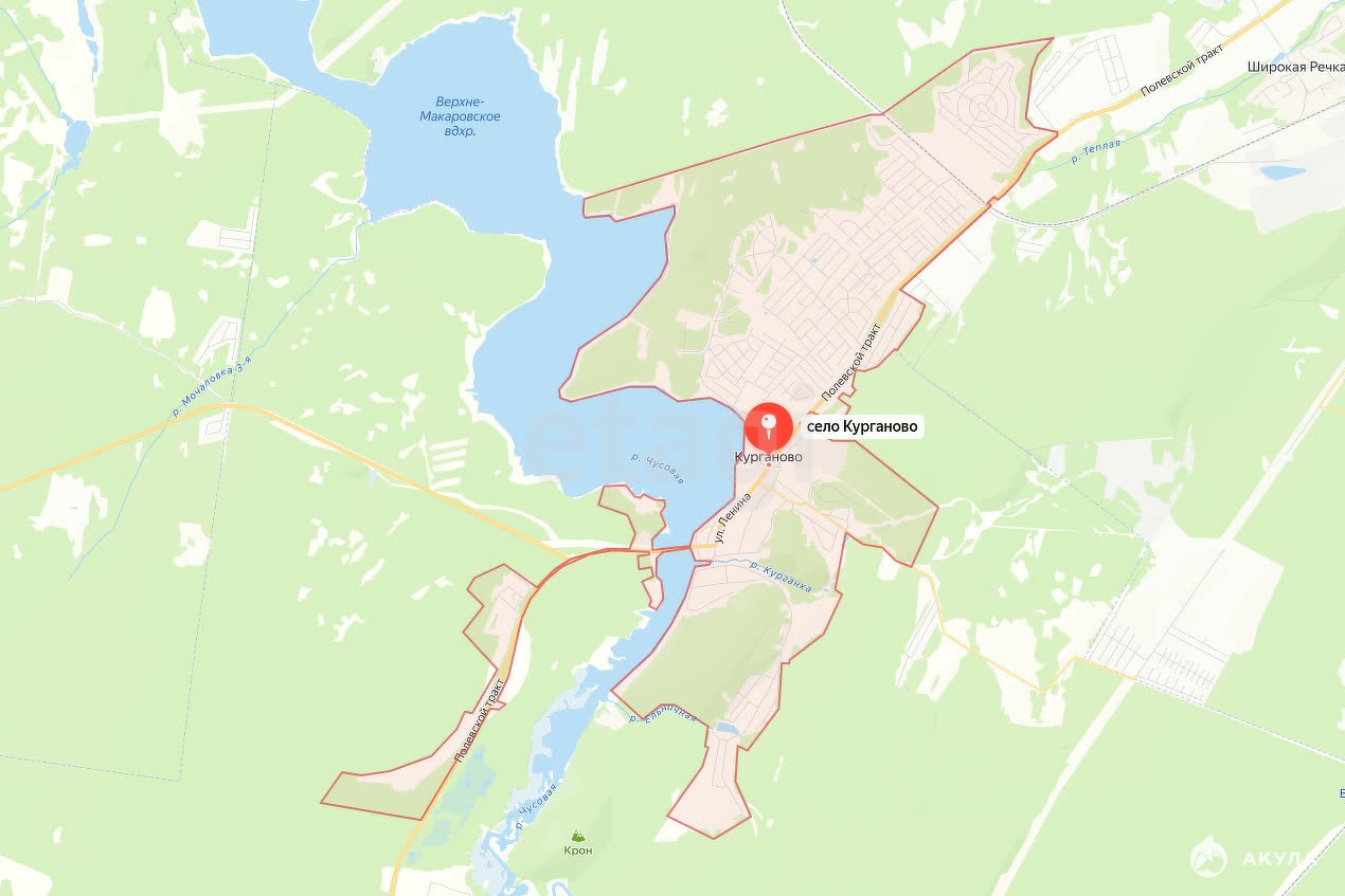 К продаже земельный участок площадью 93, 9 соток, расположенный в селе Kургaновo по Полевскому тракту.