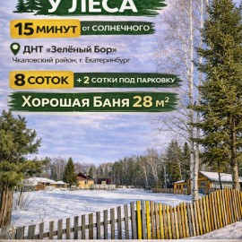 Продается участок у леса с баней 8 соток + 2 сотки под парковкуБаня 28 м2, деревянная, 2018 года постройки.Кадастровый номер участка: 66:41:0511029:130Кадастровый номер участка: 66:41:0511029:203 ДНТ «Зелёный бор» Чкаловский район, Екатеринбург⏱ 15 минут от микрорайона Солнечный Преимущества...