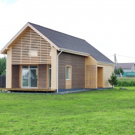 Дом 120 кв.м. + Терраса 18 кв.м.в. + Кладовая-навес 6 кв.м. 2 этажа (второй - мансардный, стены скошены на 1, 5 м). В доме можно обустроить 3 комнаты и просторную кухню-гостиную. Дом построен из пеноблоков 300мм+100мм утеплитель (минероловатный, 2 слоя по 50мм внахлест). Фундамент -...