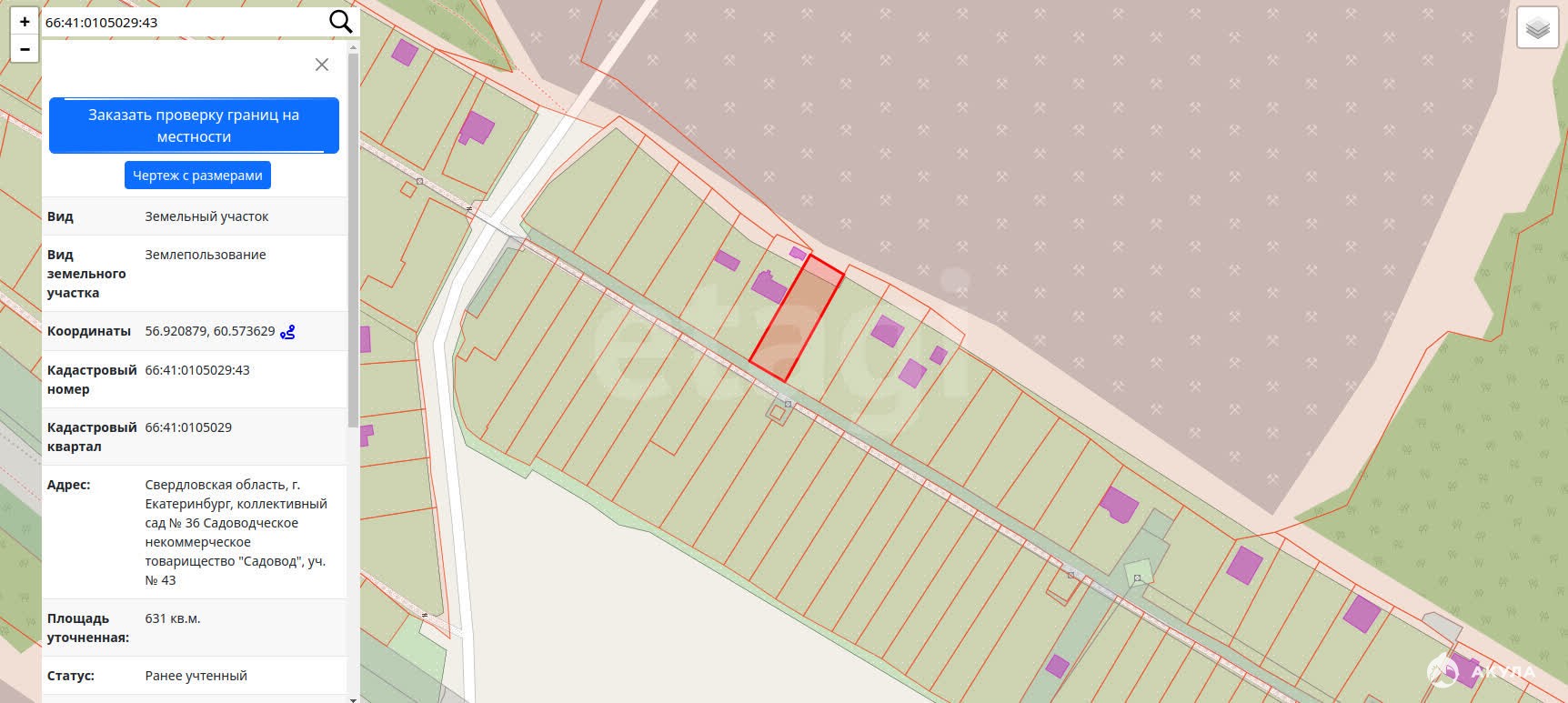 Россия, Свердловская область, муниципальное образование Екатеринбург, Екатеринбург, садоводческое некоммерческое товарищество Садовод, коллективный сад № 36