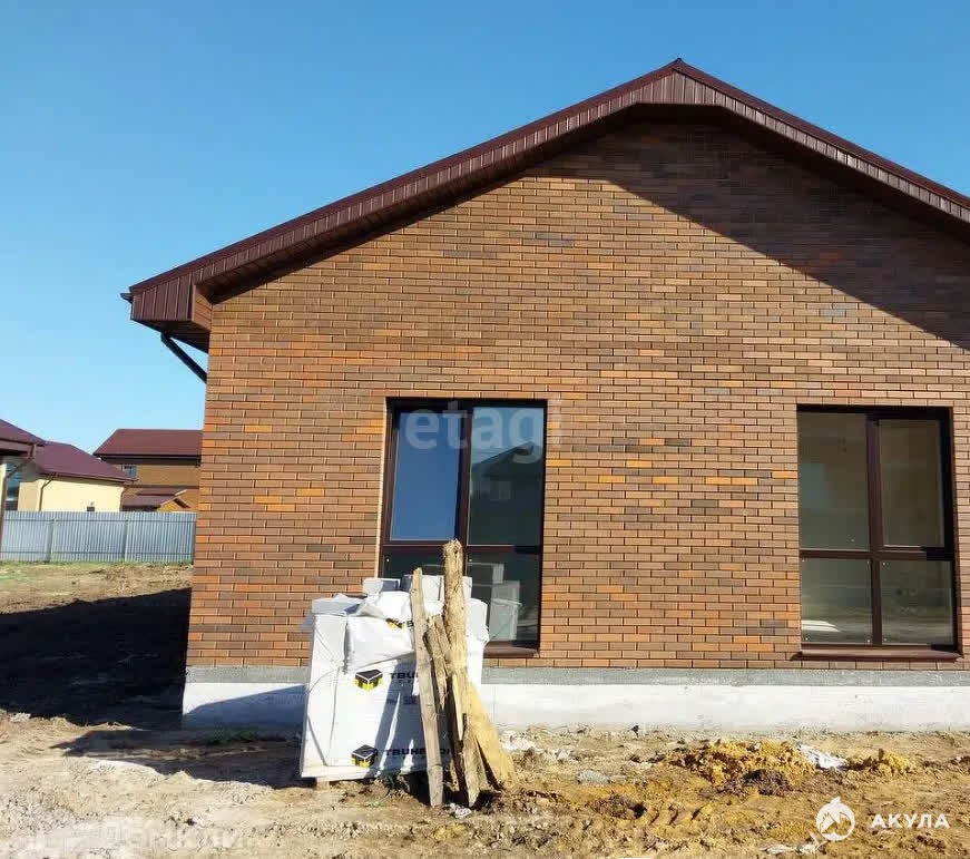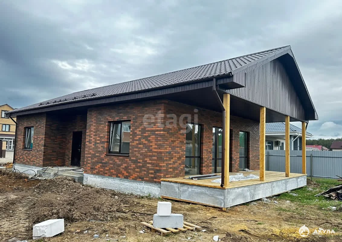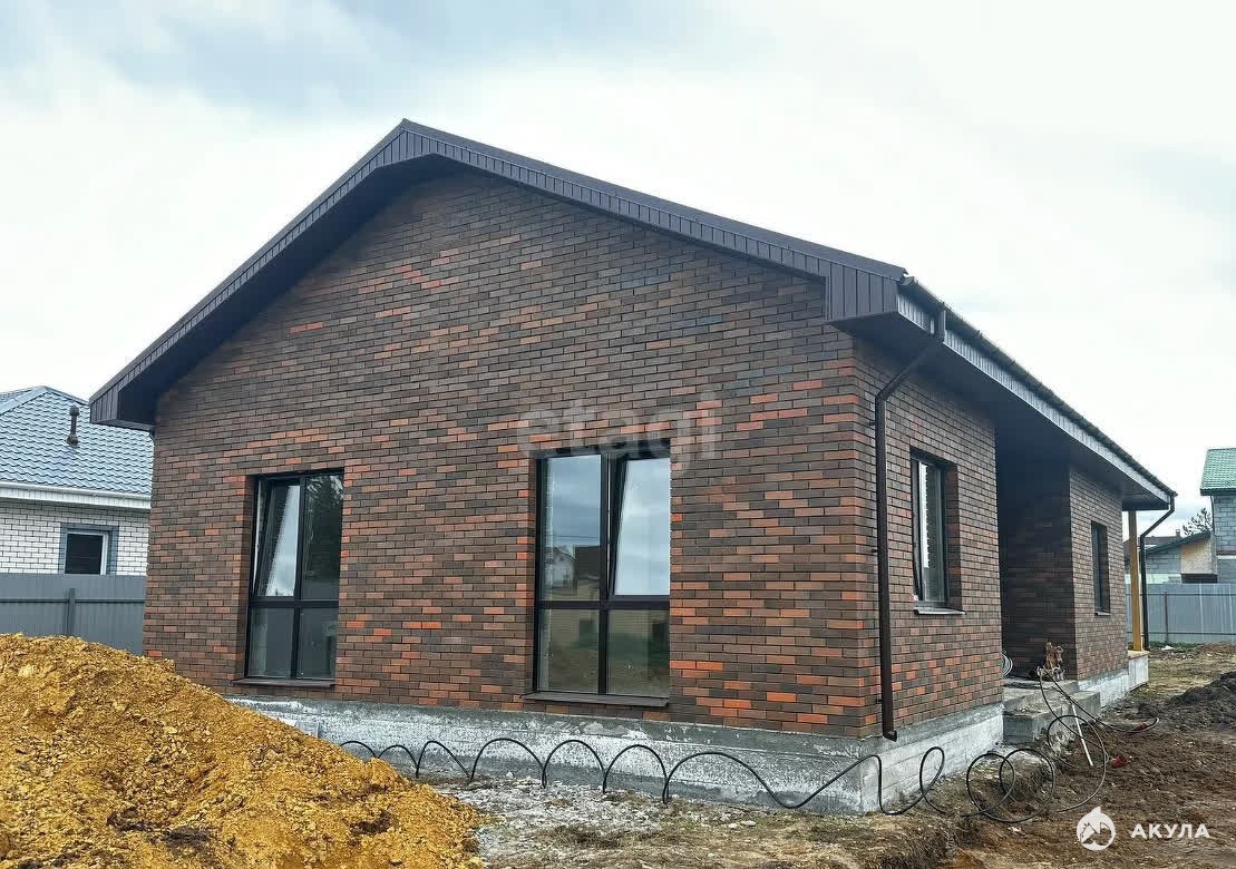 Фундамент: монолитная плита, стены: газоблок (300 мм.), утеплитель (200 мм. надувная эковата), внешняя отделка: КИРПИЧвентканал: кухня, санузел, кровля: металлочерепица.Отделка “под чистовую"!