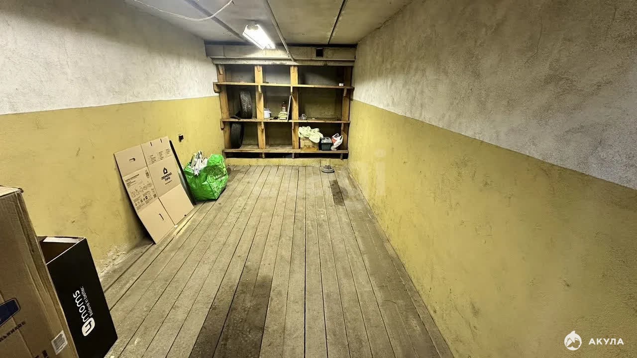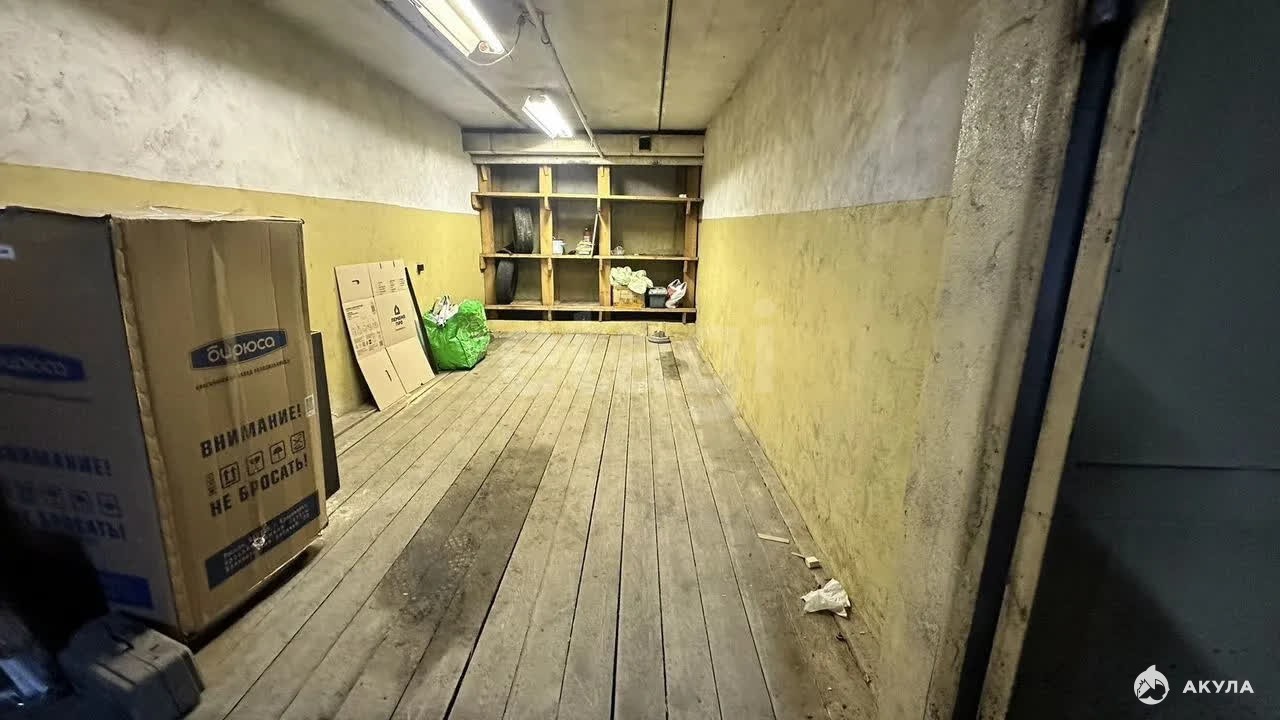 Оборудован полками. Деревянный пол.