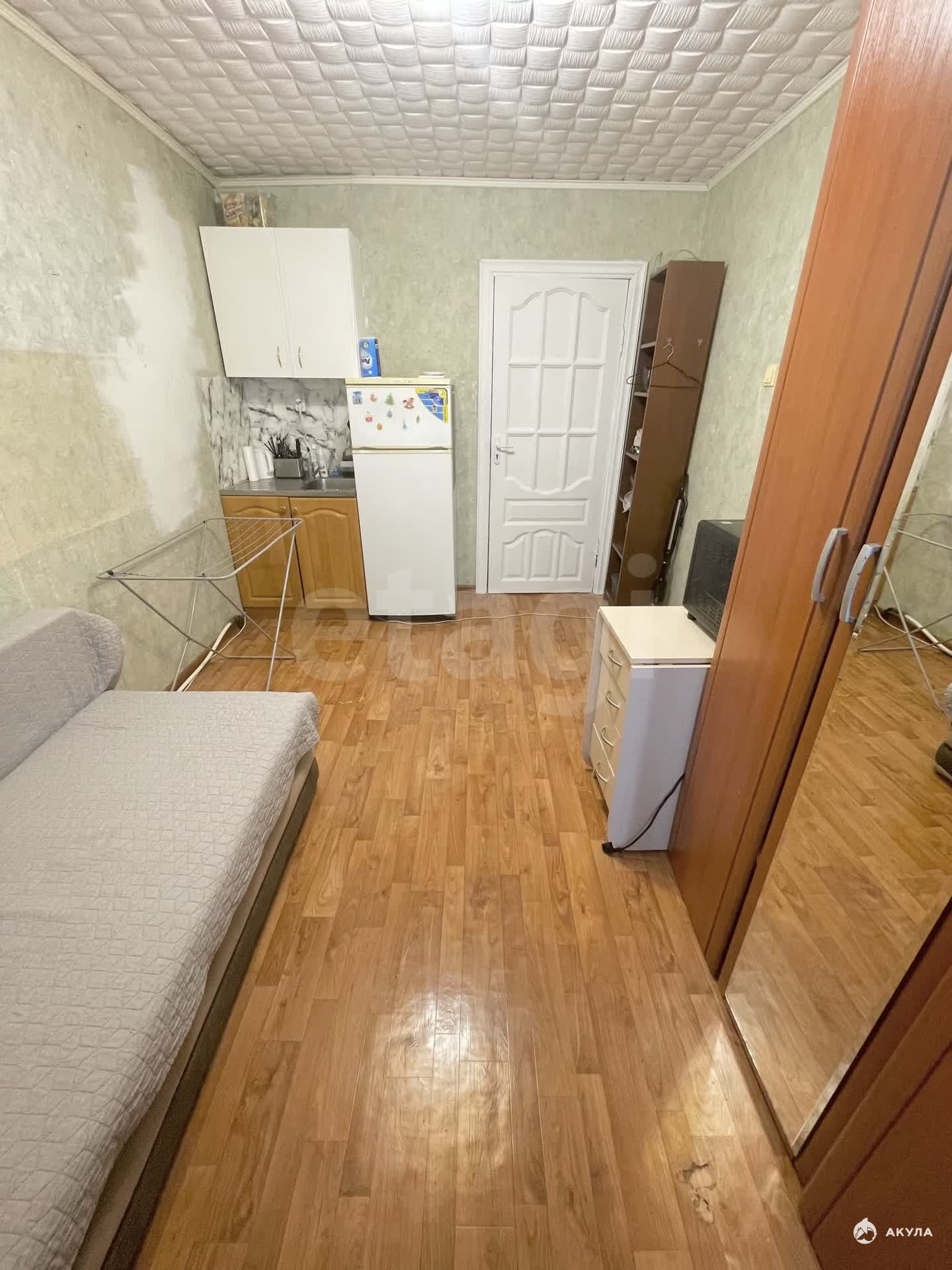 В комнате своя зона кухни, отдельная от общей. Окно выходит во двор.