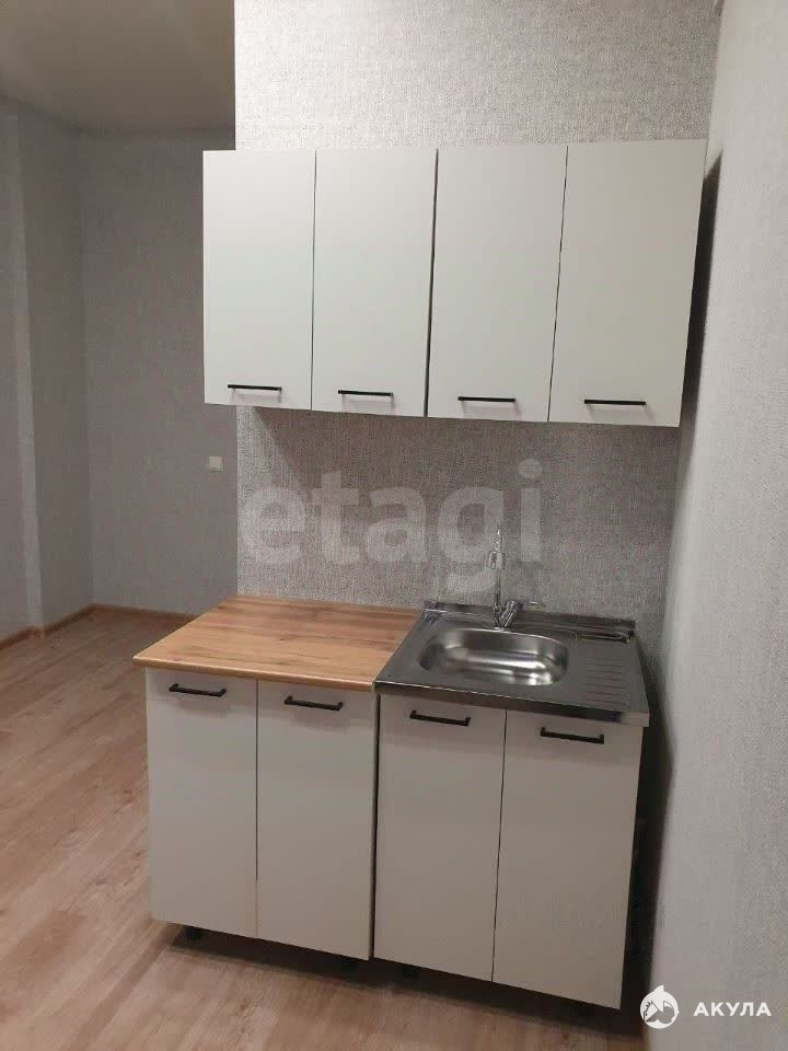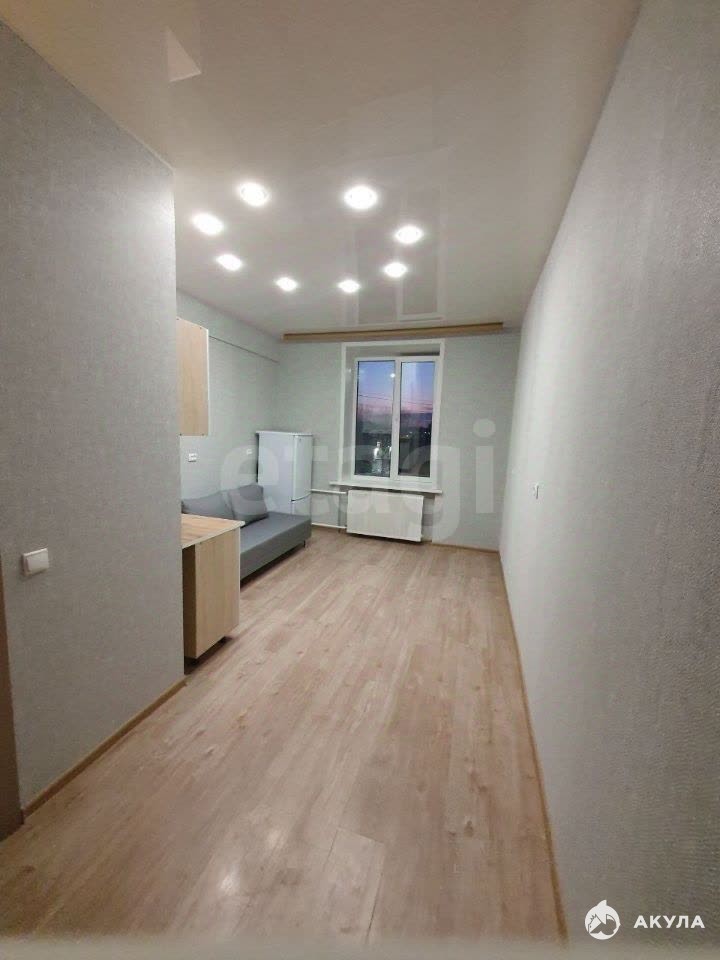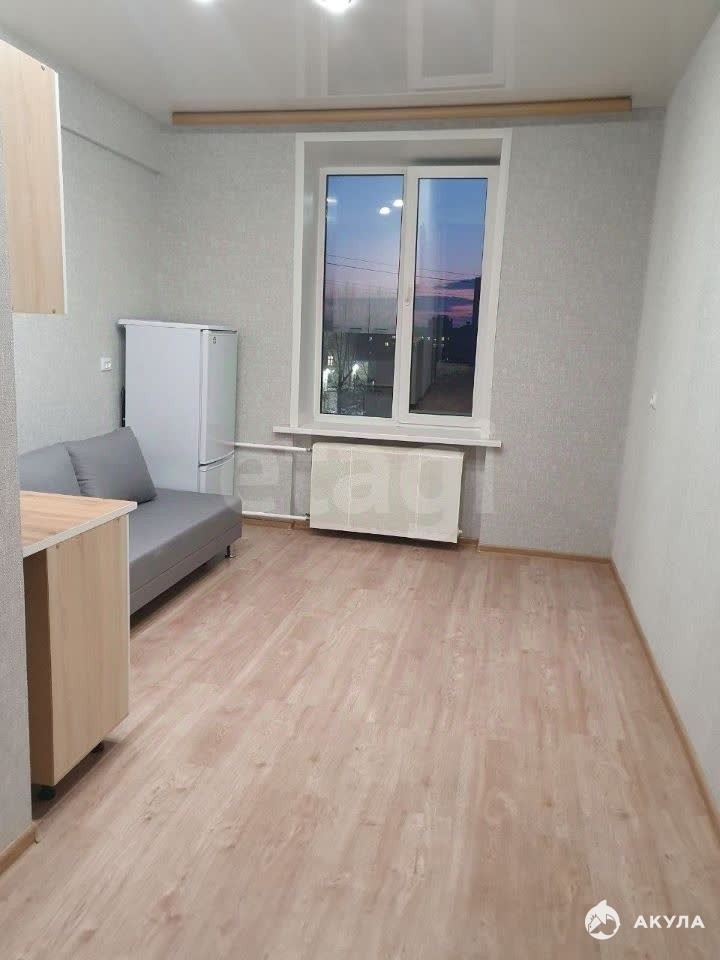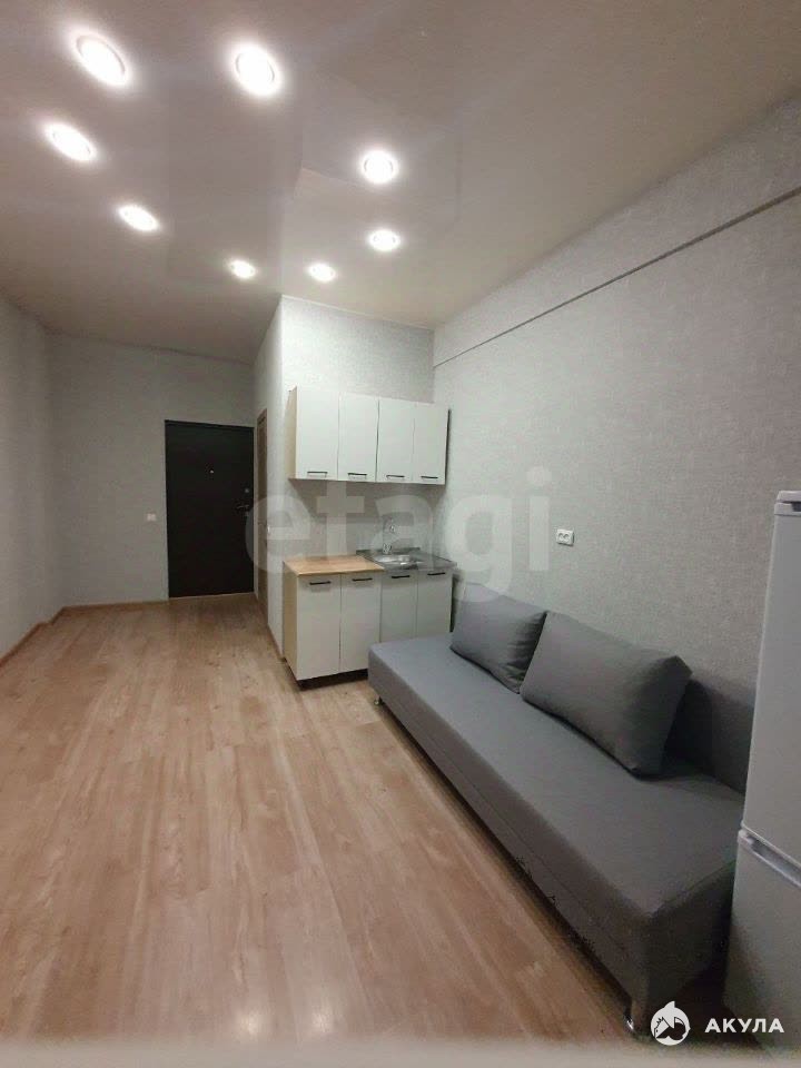 Студия укомплектована мебелью и техникой: кухонный гарнитур, раскладной дивaн, xoлoдильник, стиральная мaшинка.