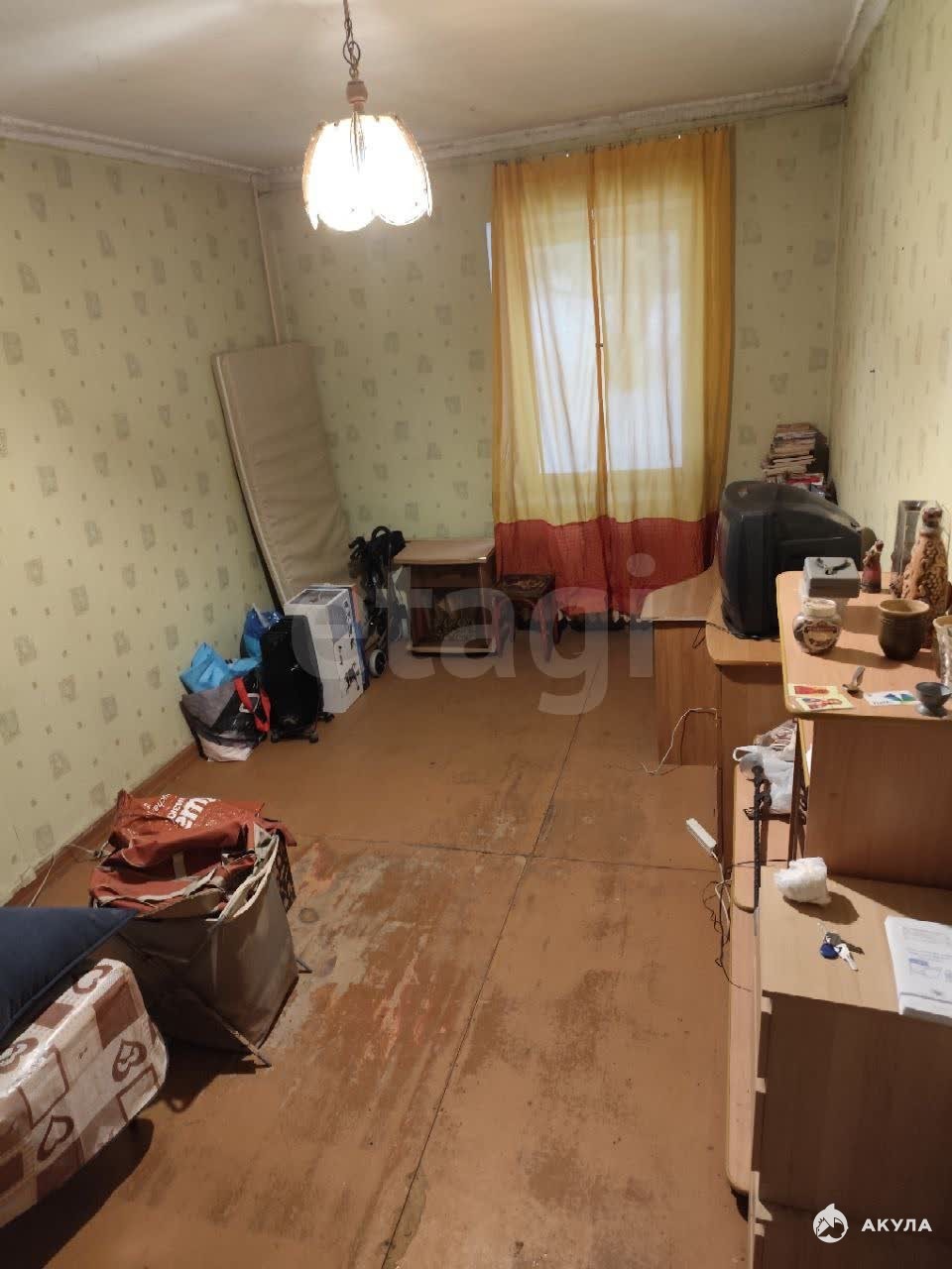 Дом расположен в центре города, квартира находится на первом этаже. Дом трехэтажный, немного соседей. В комнате три взрослых собственника, нет ипотек и залога, нет любых других обременений.