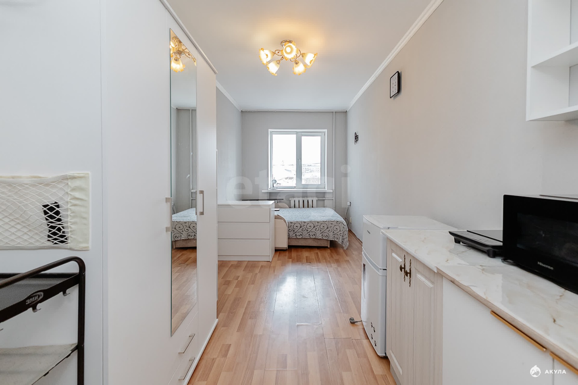 В продаже великолепная светлая, тёплая, уютная комната с отличным ремонтом. Из окна открывается вид на зелёный двор. Вся мебель и техника остаются новому владельцу.