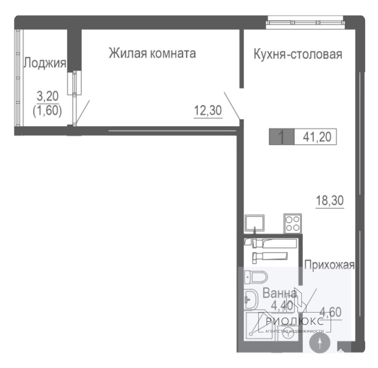 Общая площадь квартиры — 41, 2 кв. м. Здесь вас порадует поистине просторная кухня площадью 18, 3 кв. м — место, где можно не только готовить, но и собираться всей семьёй или с друзьями. Жилая площадь составляет 12, 3 кв. м — комфортное пространство для отдыха и сна.