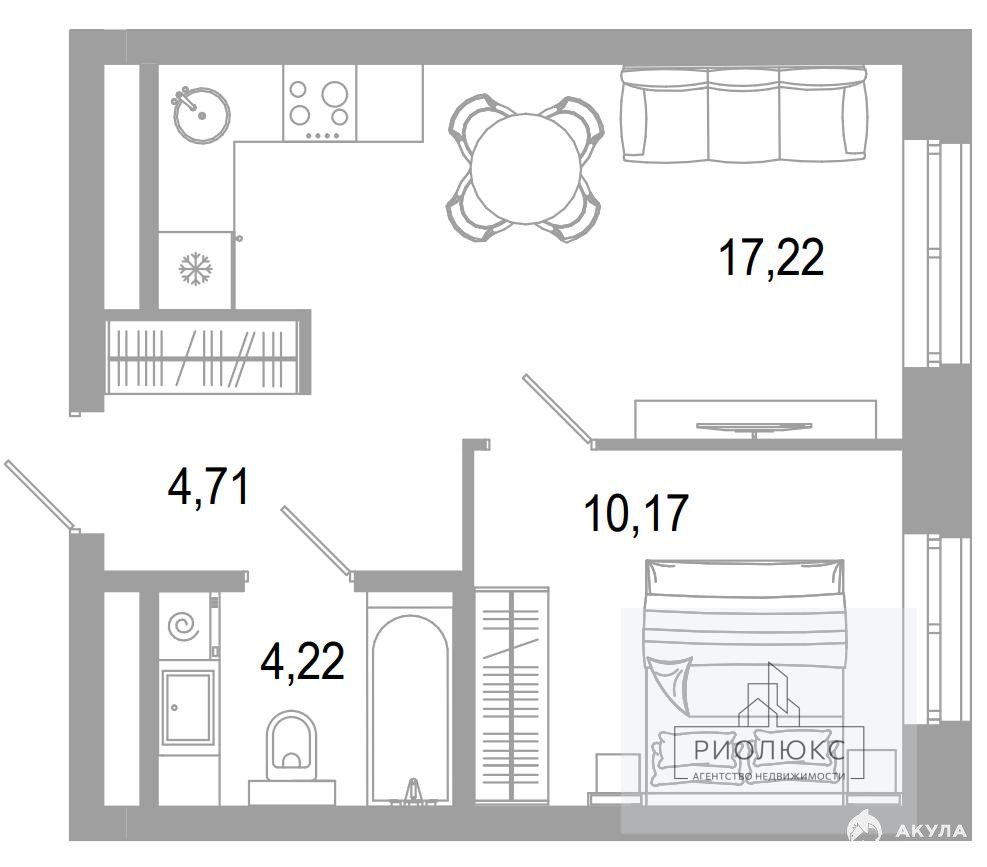 - 17.2 м²