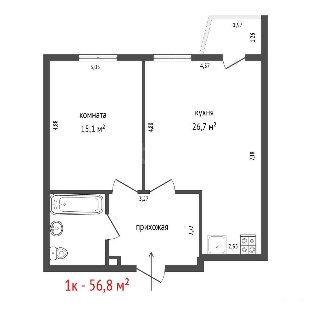 - 26.7 м²