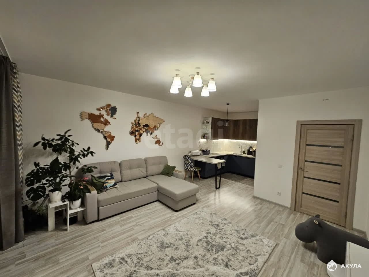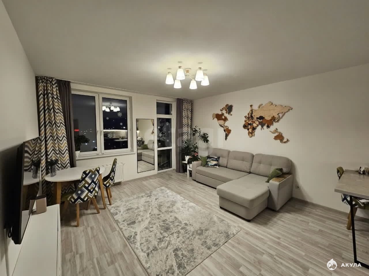 Квартира отличается удачной планировкой с большой кухней-гостиной и изолированной комнатой, при этом существует техническая возможность разделения общей зоны на кухню и вторую комнату, что повышает вариативность использования пространства. Окна выходят на восточную сторону, обеспечивая помещение естественным светом в первой половине дня.