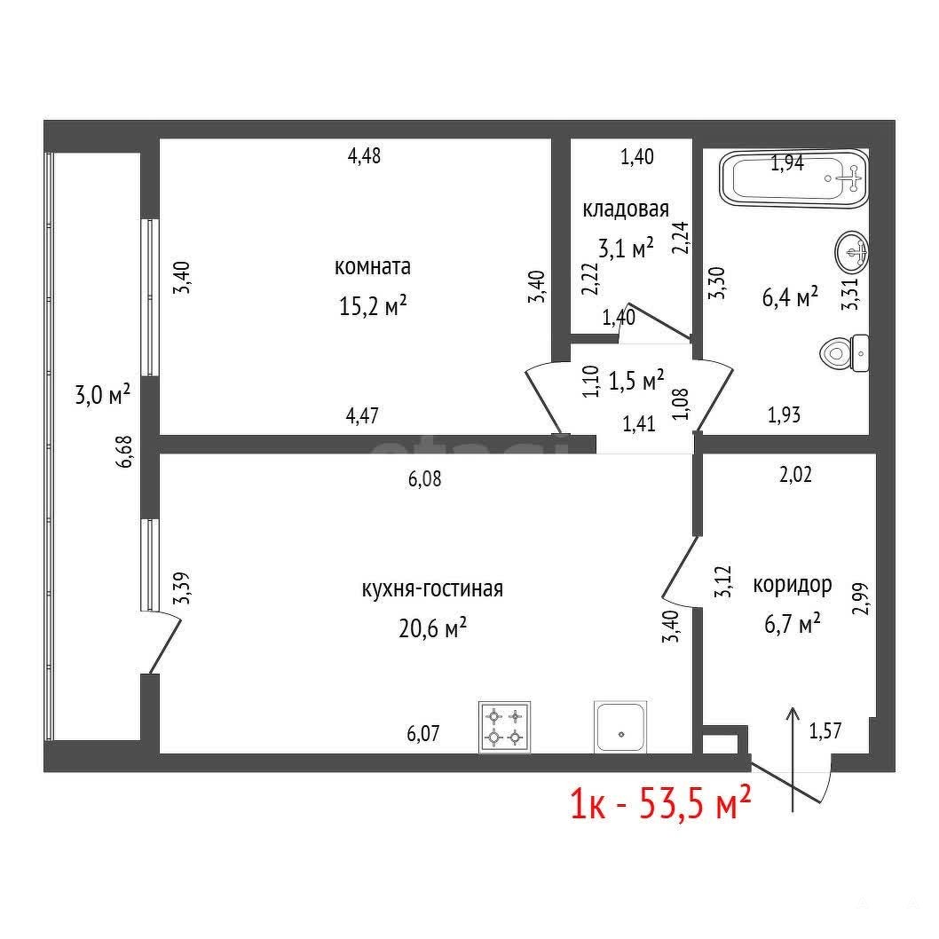 - 54 м²