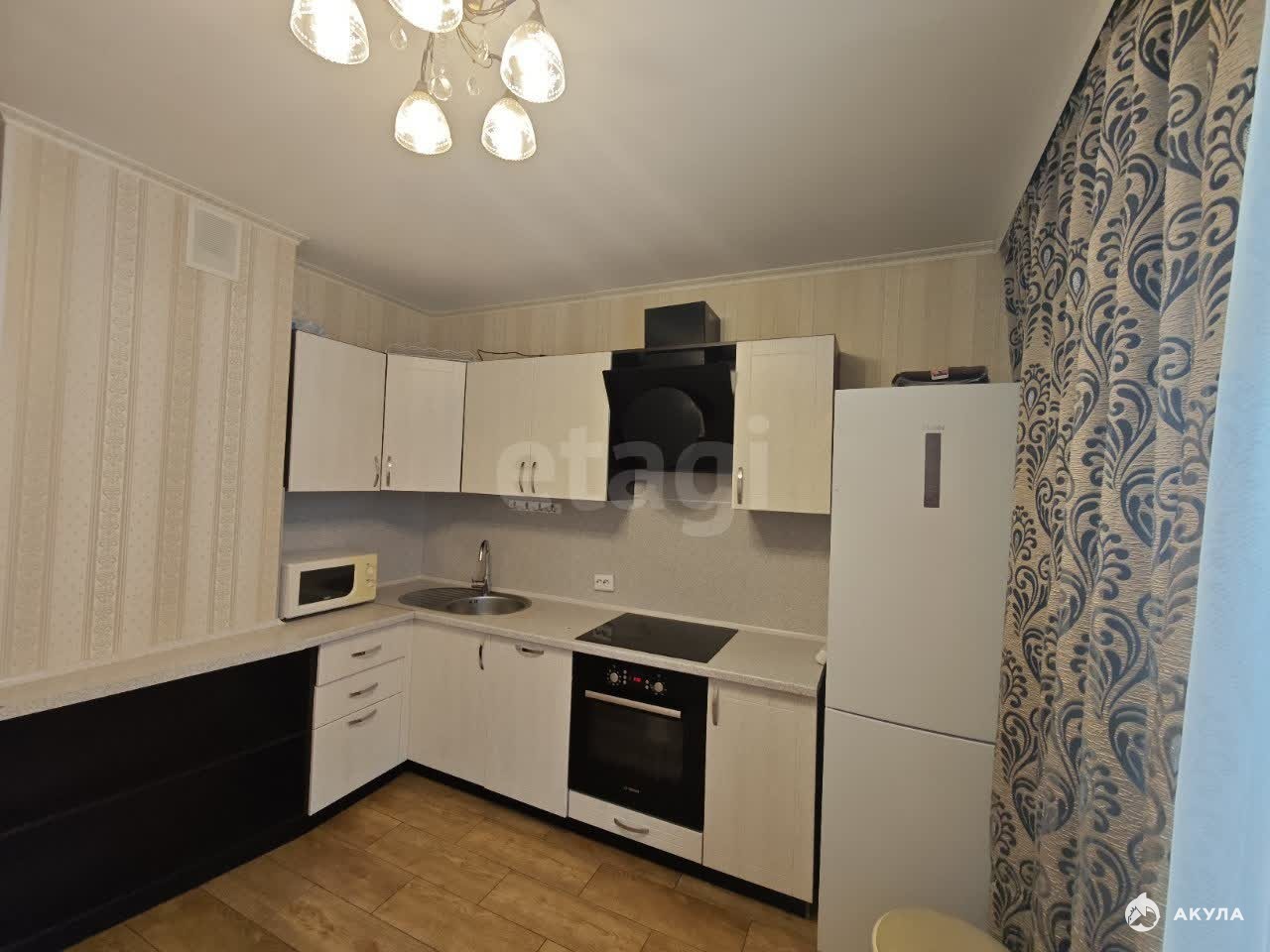 Кухня оборудована мебелью. Санузел совмещенный, оформлен в светлых тонах, оснащён ванной .