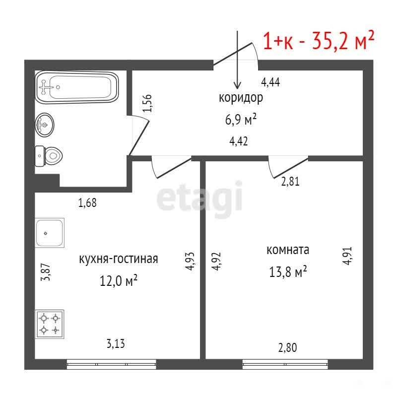 Продается уютная 1-комнатная квартира, отлично подходит для студента! Общая площадь — 35, 2 м², кухня — 12 м². В квартире выполнен качественный свежий ремонт в светлых тонах, она теплая, светлая и уютная. Хорошая шумоизоляция создает комфортные условия для учебы и отдыха. В доме есть современный лифт, чистый и ухоженный подъезд.