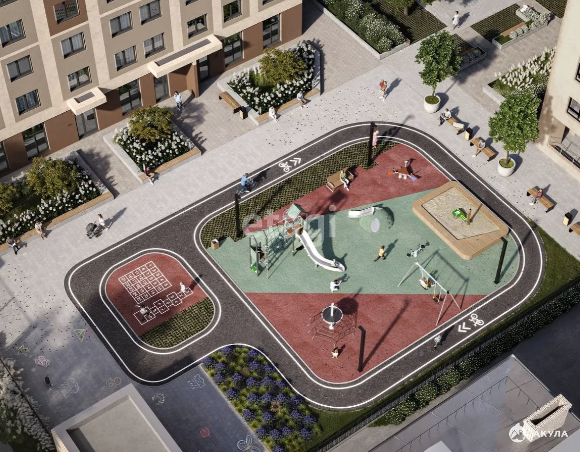 В проекте предусмотрен закрытый двор, видеонаблюдение, подземный паркинг, функциональные детские площадки.