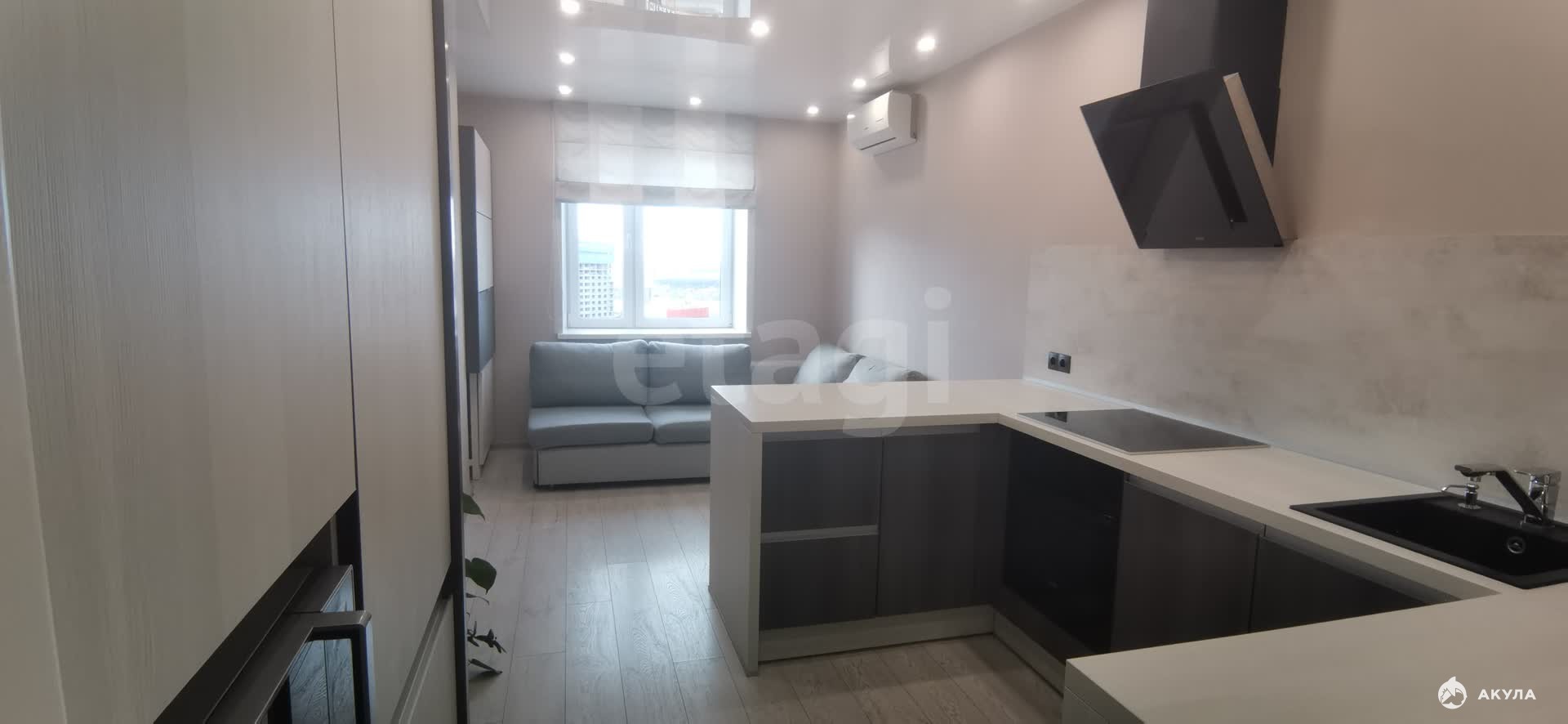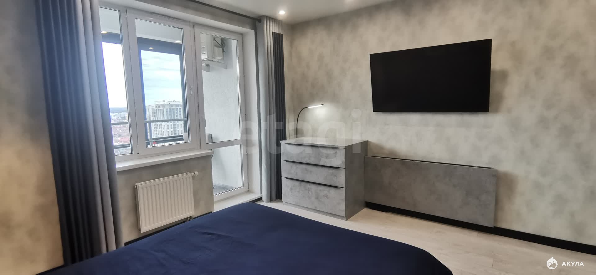 Продается просторная двухкомнатная квартира на 23 этаже в жилом комплексе «Квартал художников». Объект характеризуется выгодной планировкой с изолированными комнатами: кухня-гостиная площадью 17 кв. м и спальня 16 кв. м. Панорамное остекление обеспечивает постоянное естественное освещение. Выполнен качественный современный ремонт в стиле минимализм с функциональной мебелью от брендов Lorena и Komandor. Вся бытовая техника присутствует и находится в рабочем состоянии, включая стиральную и посудомоечную машины, духовой шкаф, индукционную варочную панель, кондиционер и систему очистки воды. Особенностью кухни является отсутствие верхних шкафов, что создает ощущение дополнительного простора. Организованы два рабочих места и продуманные системы хранения, включая гардеробные в прихожей и санузле. На лоджии обустроена зона отдыха с креслами-качалками и освещением. Квартира укомплектована охранной сигнализацией, а на этаже предусмотрена общая кладовая комната. Жилой комплекс обеспечен охраняемой территорией, благоустроенным двором и активным сообществом собственников. Расположение в южно-центральном районе обеспечивает отличную транспортную доступность: станция метро находится в 700 метрах. В шаговой доступности сосредоточена вся необходимая инфраструктура — магазины, медицинские центры и салоны красоты. Объект полностью готов к проживанию и не требует дополнительных вложений.
