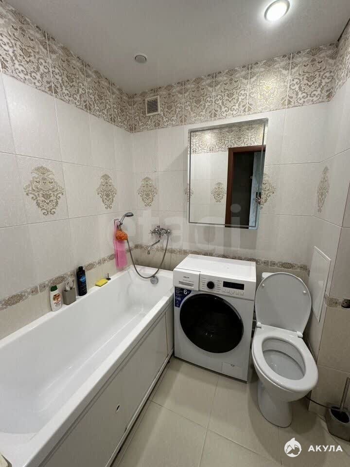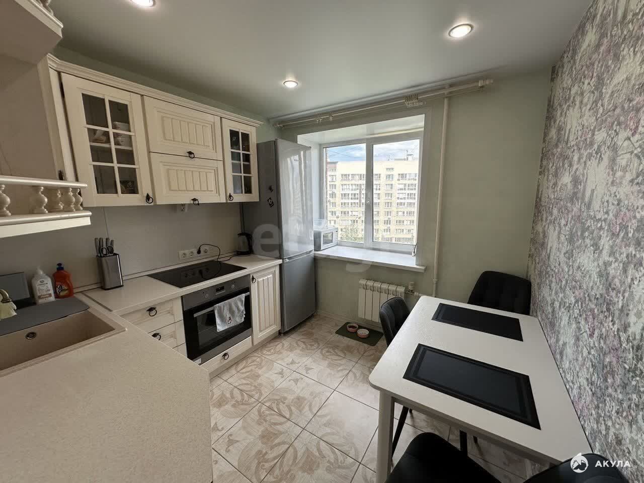 Большая изолированная комната площадью 18 квадратных метров, в которой при необходимости можно разделить спальную зону и рабочее пространство. На кухне установлен новый кухонный гарнитур и встроенная техника — варочная панель и духовой шкаф - остается в квартире. Санузел совмещенный, вся сантехника обновлена. Широкий застекленный балкон.