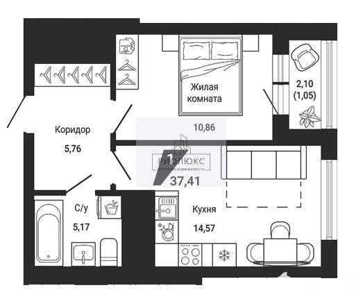 Общая площадь жилья составляет 37, 41 м², из которых 14, 57 м² отведено под просторную и функциональную кухню — здесь хватит места для создания кулинарных шедевров и семейных ужинов. Жилая площадь — 10, 86 м², и она позволит организовать пространство так, как вам удобно: будь то уютная спальня, рабочий кабинет или зона для отдыха.