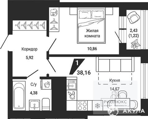 Общая площадь квартиры составляет 36, 18 кв. м — это оптимальный вариант для одного человека или молодой пары. Просторная кухня площадью 14, 57 кв. м станет настоящим местом притяжения для любителей готовить и принимать гостей. Жилая площадь — 10, 86 кв. м — позволит организовать функциональное и стильное пространство для отдыха и работы.