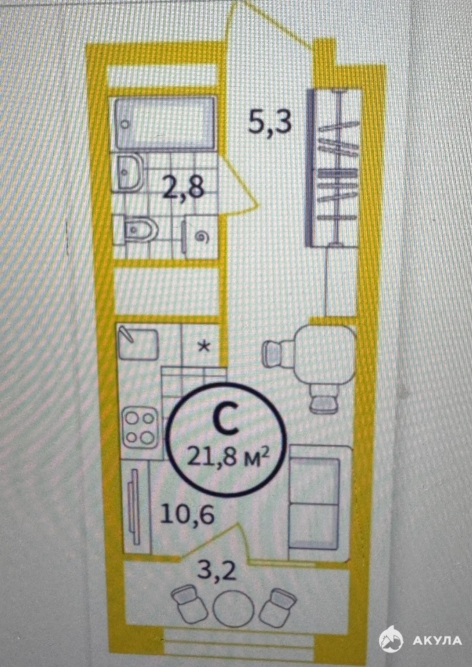 Квартира расположена в 4 доме, на 5 этаже, вид из окон на ул. Щербакова, отделка White box (предчистовая). Общая площадь: 21.9 кв.м. Высота потолков 2.7 м. Сдача объекта 2 кв 2026 года.