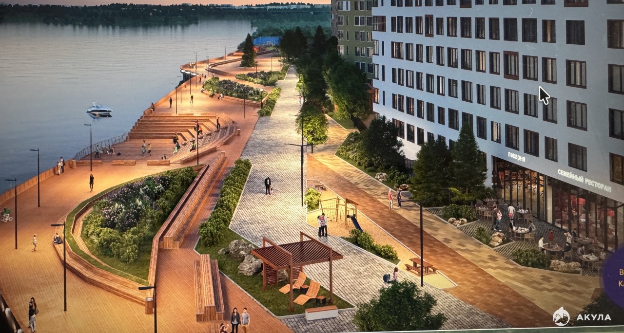 Красивая благоустроенная набережная — совершенно новый формат прогулочной зоны у воды. Место готово к разной аудитории: дети смогут играть на площадках, спортсмены заниматься в воркаут-зоне, взрослые отдыхать на скамейках, подростки зависать на ступеньках амфитеатра или кататься на самокатах. Внизу - смотровая площадка и спуск к воде.