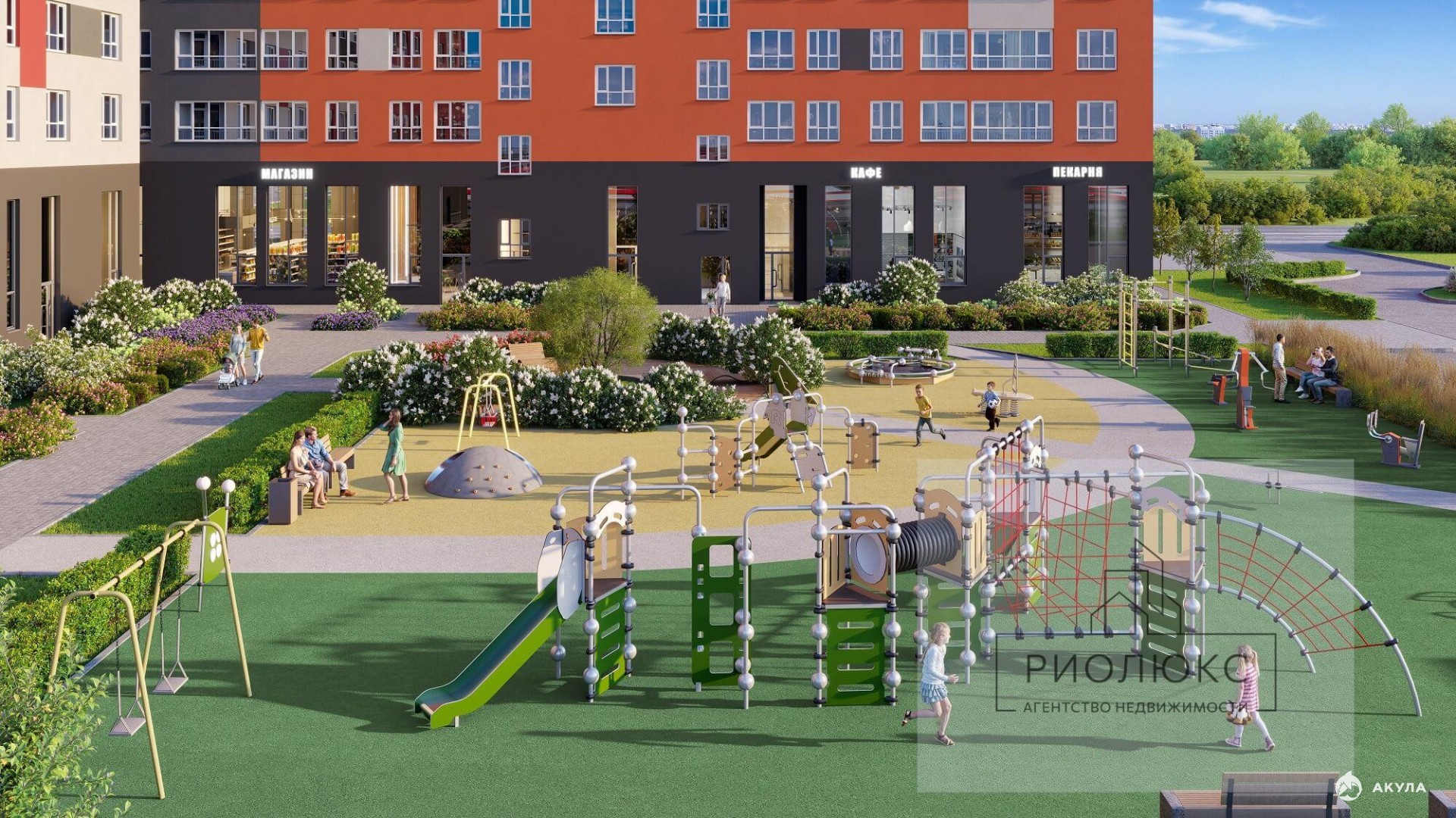 Дворовая территория жилого комплекса закрыта от автомобилей. Здесь спроектированы спортивные и детские площадки, места для отдыха. Создано многоуровневое озеленение: многолетние травы, цветы, кустарники и молодые деревья. На территории ведётся круглосуточное видеонаблюдение. Для автовладельцев предусмотрена стоянка.