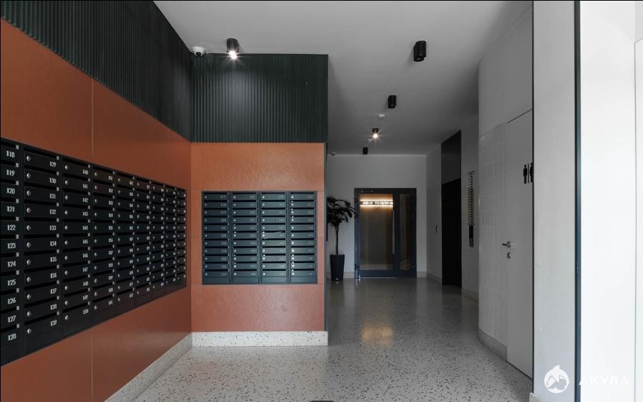 Однокомнатная квартира с кухней-гостиной: общая площадь — 43, 8 кв. м, жилая площадь — 11 кв. м, площадь кухни — 23 кв. м. Расположена на 4-м этаже 26-этажного монолитного дома.