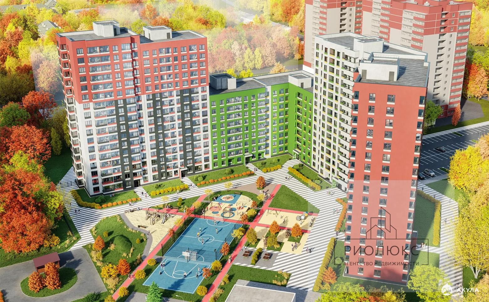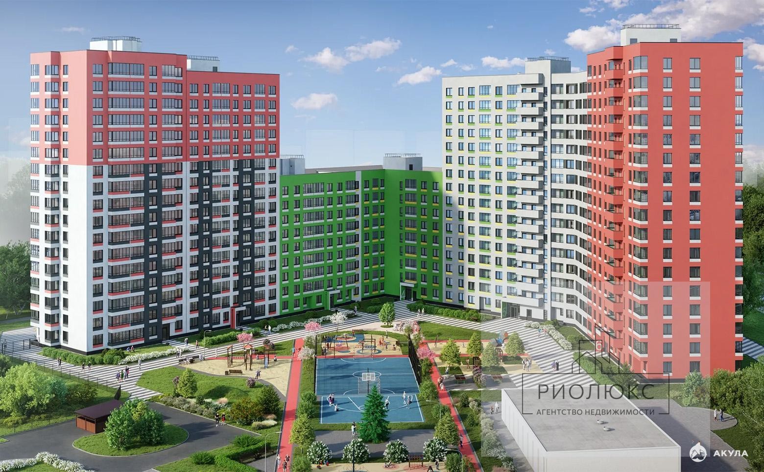 ✅ Яркий двор для жизни. Детские площадки для разных возрастов, стритбольная площадка, озеленение и круглосуточное видеонаблюдение.