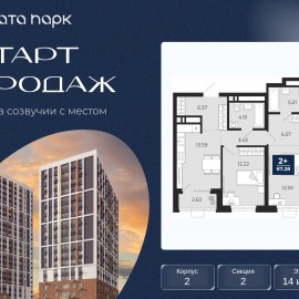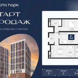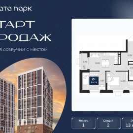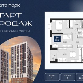 Торопитесь оформить бронирование по этой цене, период предложения ограничен! Стоимость квартиры указана со скидкой, ваша экономия составит 761, 460 руб. Информация по телефону, мы вам все подробно расскажем. 2-комн. квартира с предчистовой отделкой в ЖК "Соната Парк" на 13...