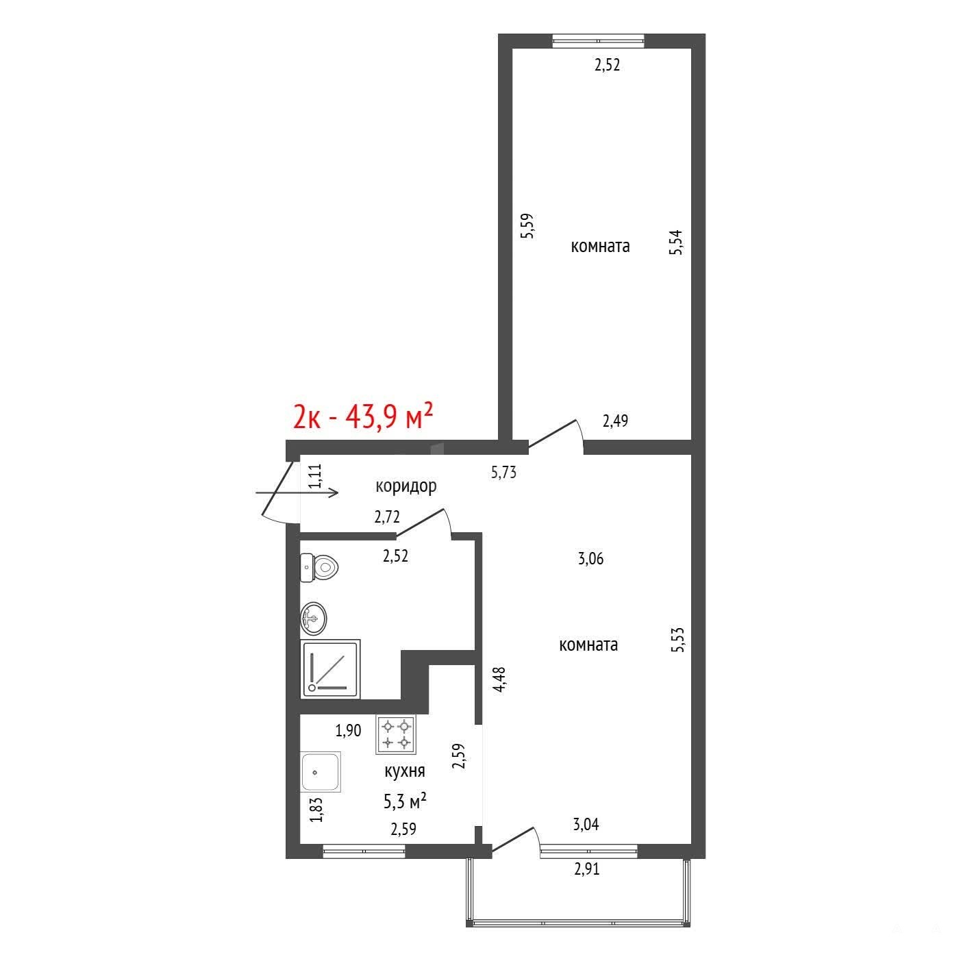 - 5.3 м²