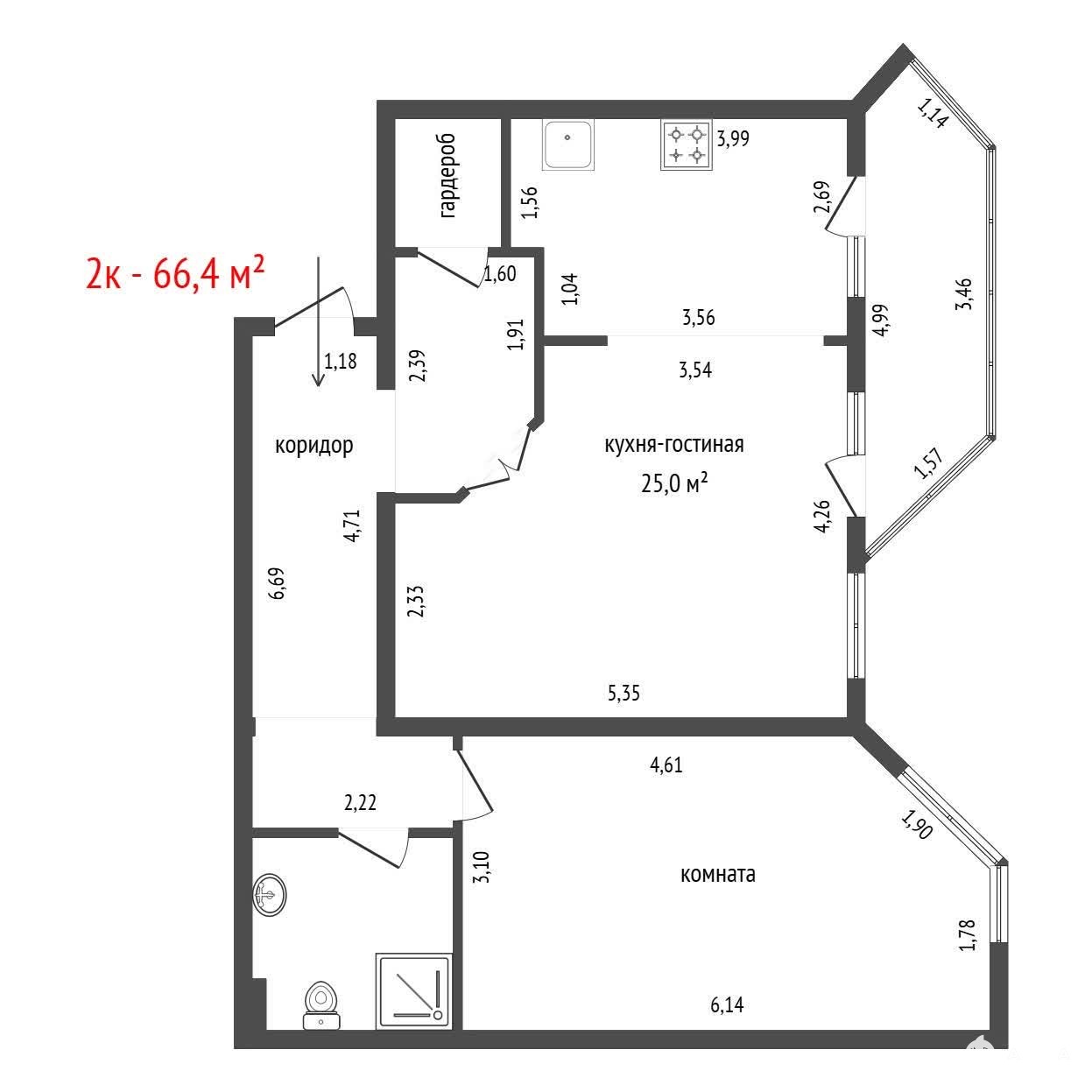 - 66 м²