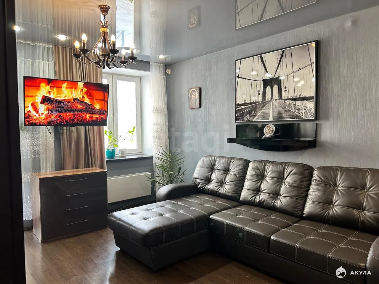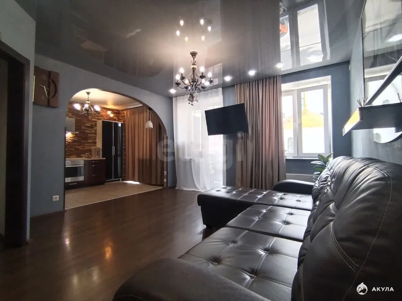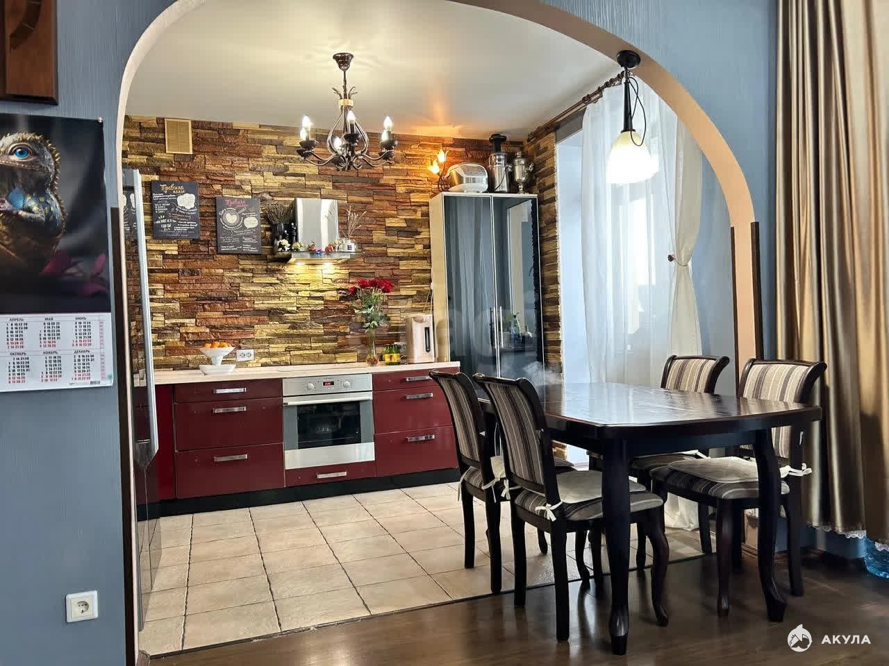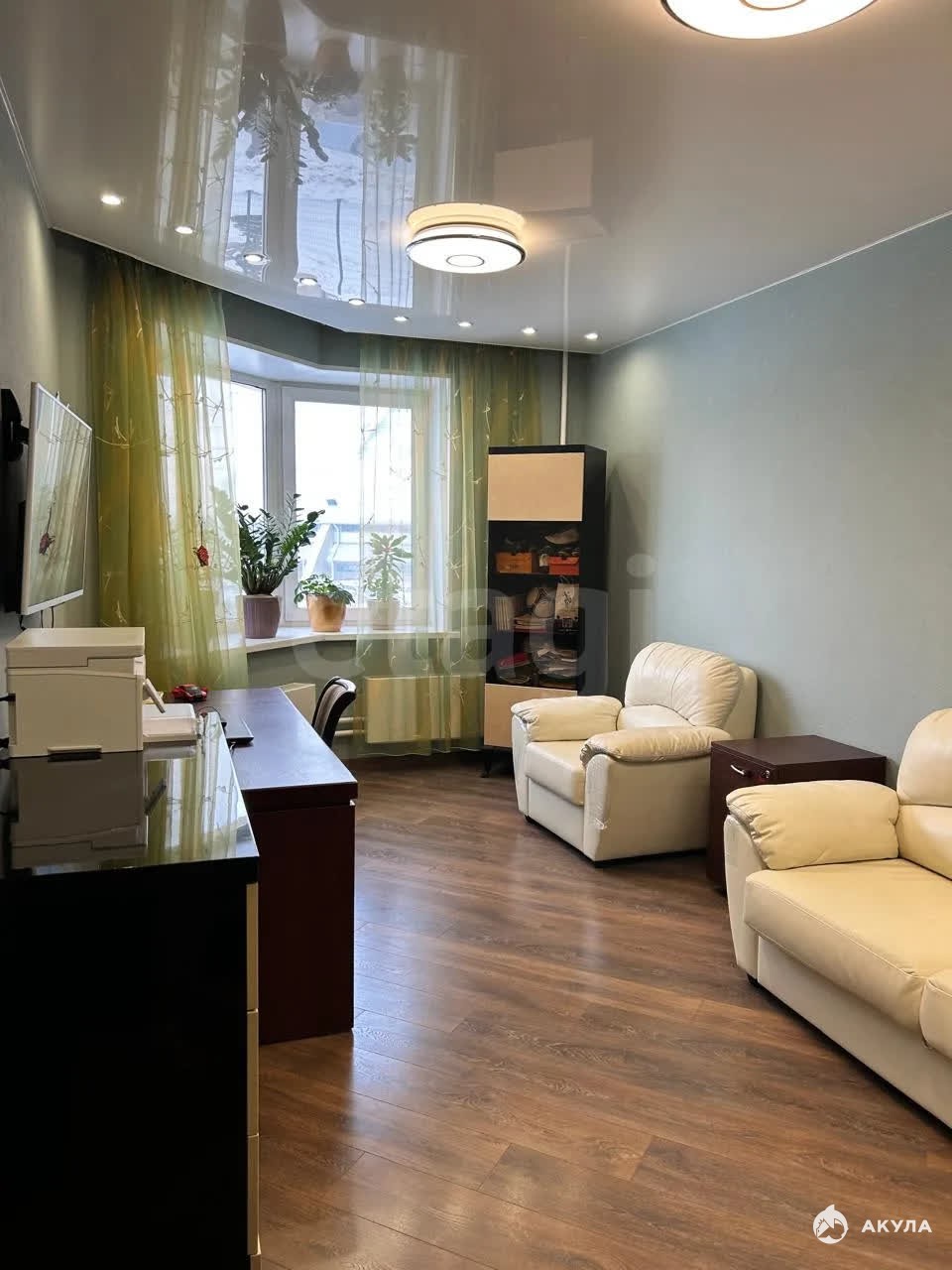 Большие окна наполняют комнаты естественным светом, а вид на зелёную улицу дарит ощущение спокойствия и уюта.