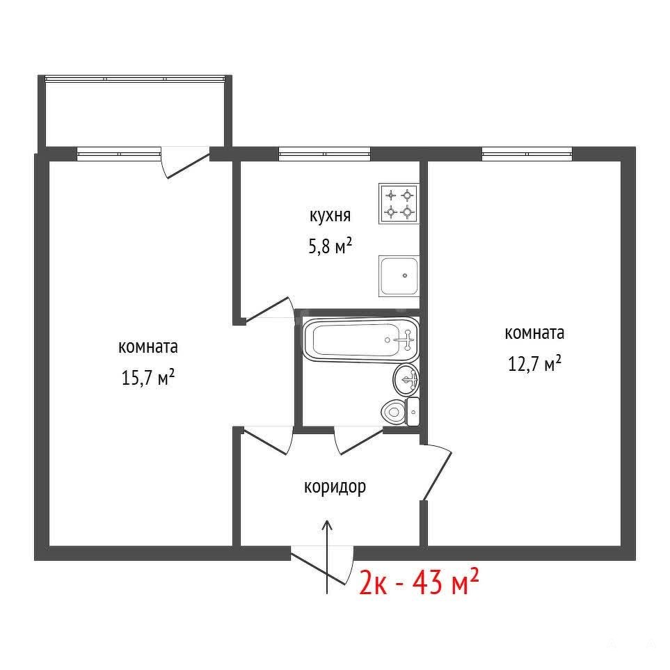 Объект: 2-комнатная квартира в панельном доме Общая площадь:43 кв.м. Высота потолков:2, 5 м