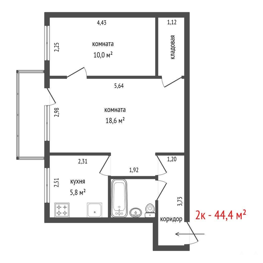 - 44 м²