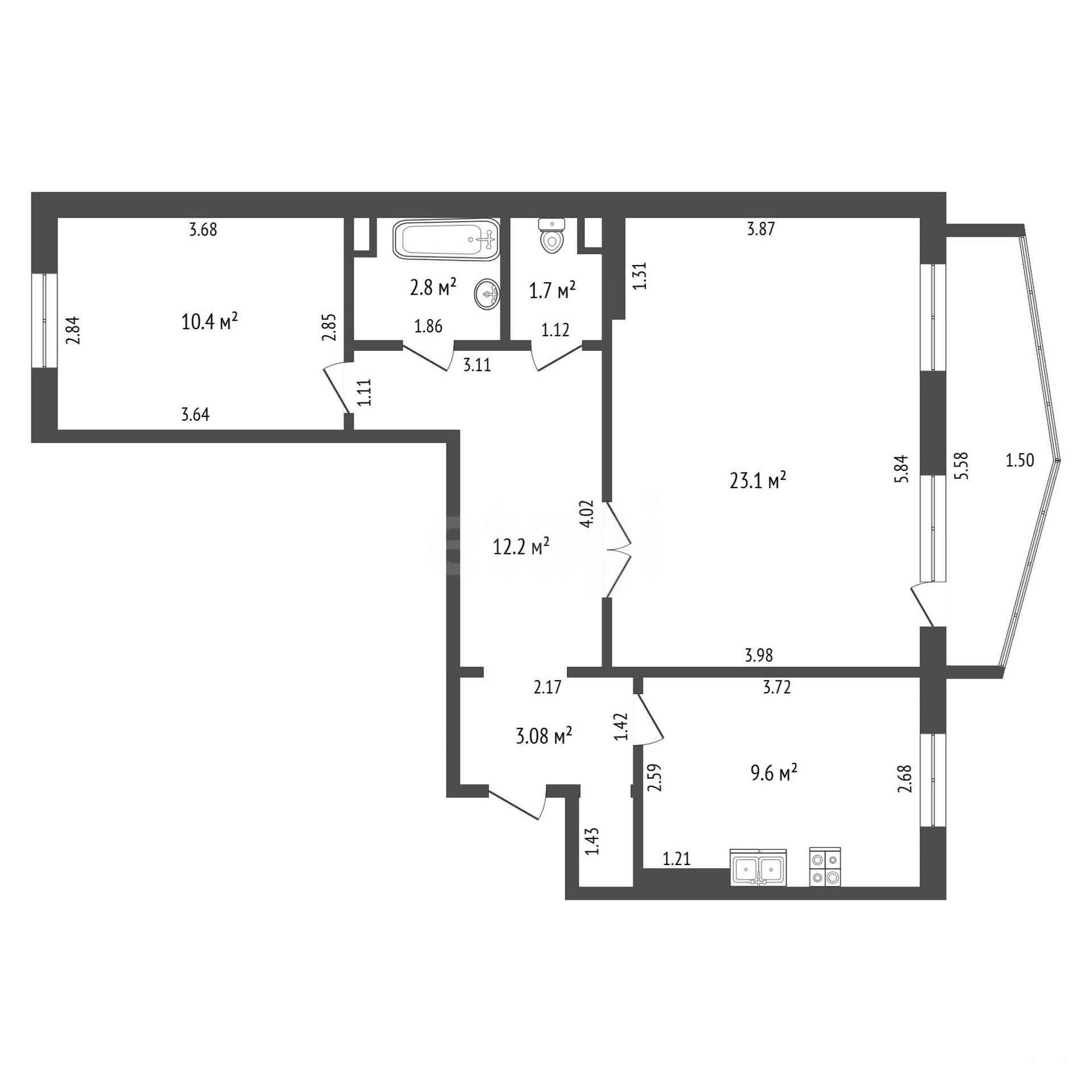 - 9.6 м²