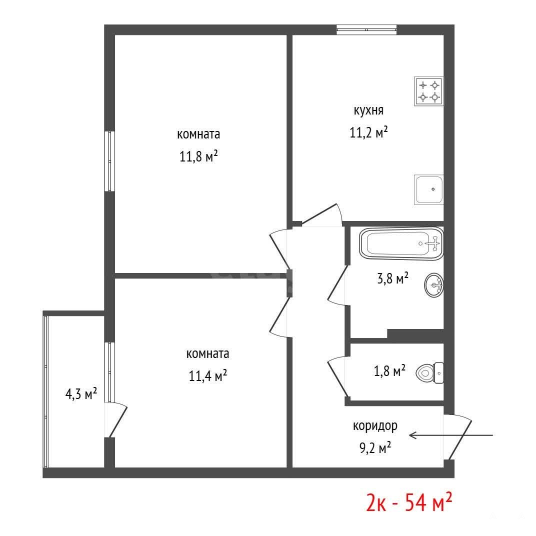 - 54 м²