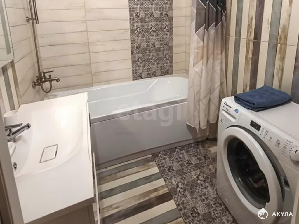 Отделка выполнена с использованием качественных материалов. Вся мебель и техника на фото остается в подарок покупателям.