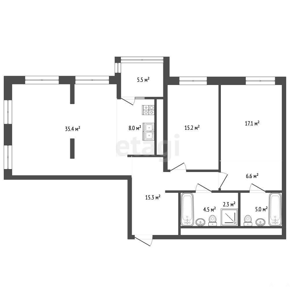Просторная двухкомнатная квартира (евротрешка) в ЖК Макаровский.