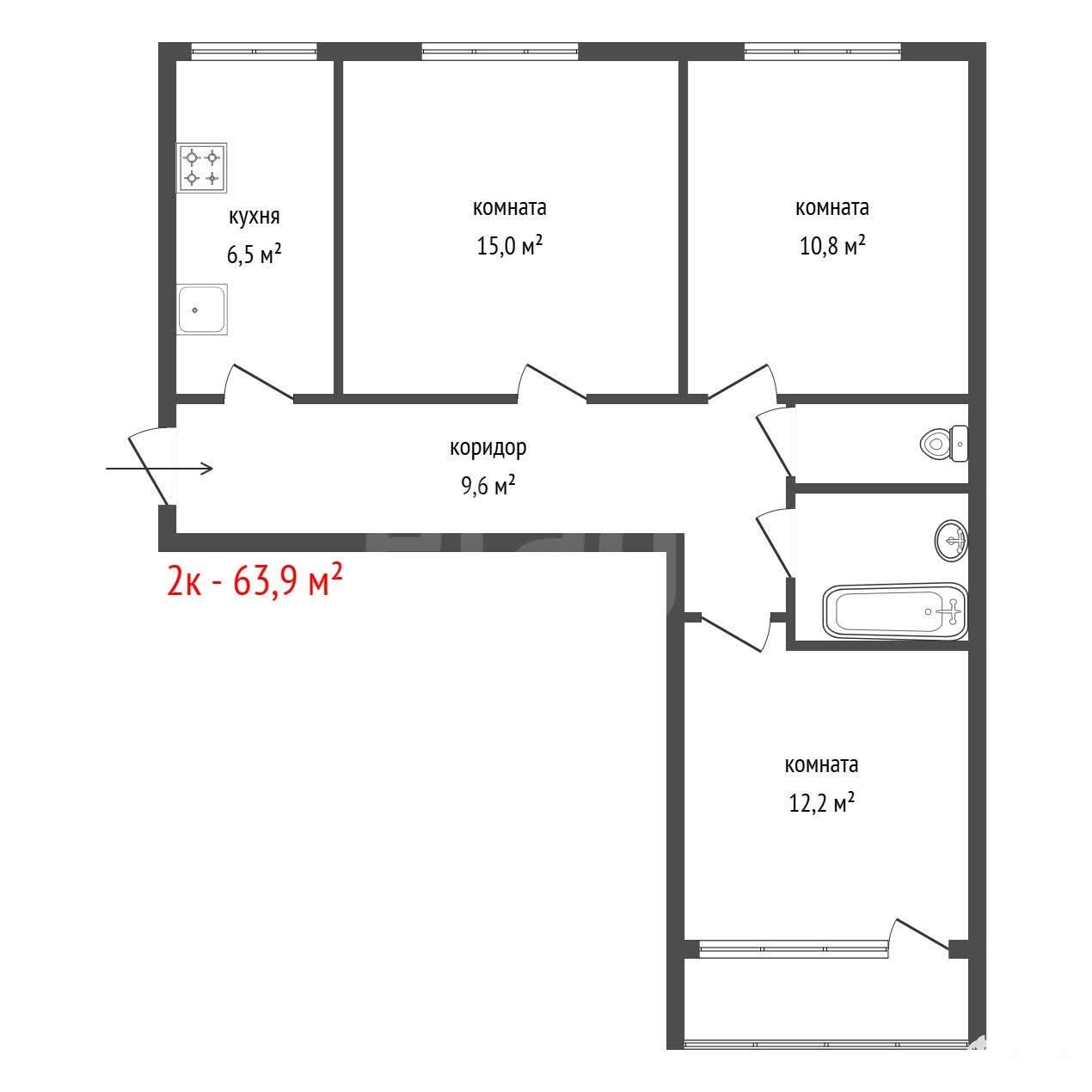 - 64 м²