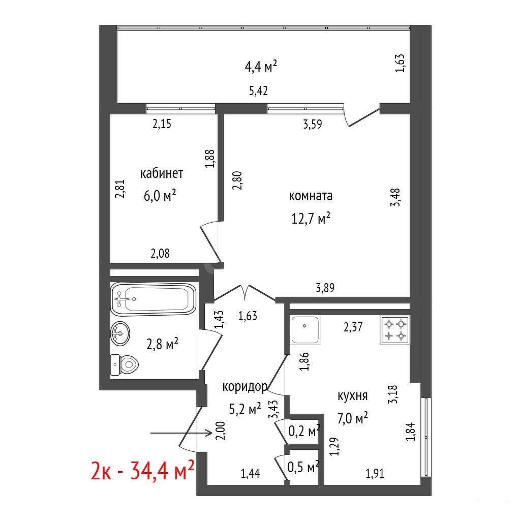 - 34 м²