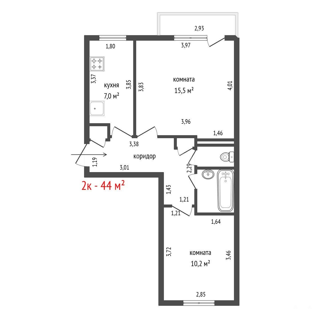 - 44 м²