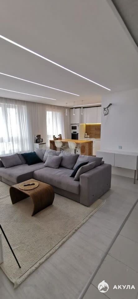 Ремонт сделан по уникальному дизайн-проекту - стильные дорогие двери, потолки с встроенными светильниками и линиями освещения. Теплый пол (прихожая, коридор, ванная, с/у, балкон). Пол и потолок со звукоизоляцией. Потолки навесные из гипсокартона; освещение светодиодное. Сенсорные выключатели света.