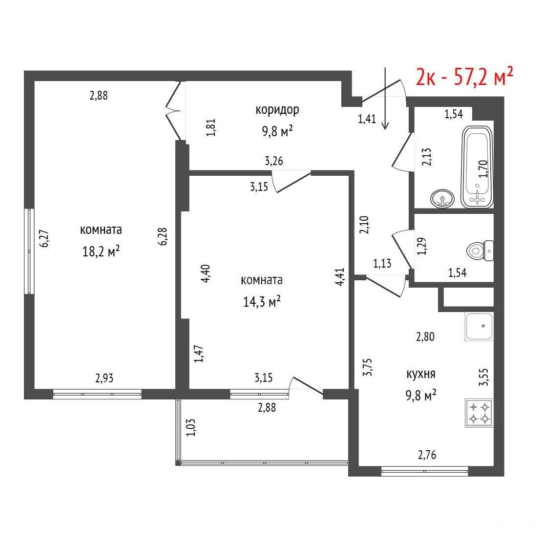- 57 м²
