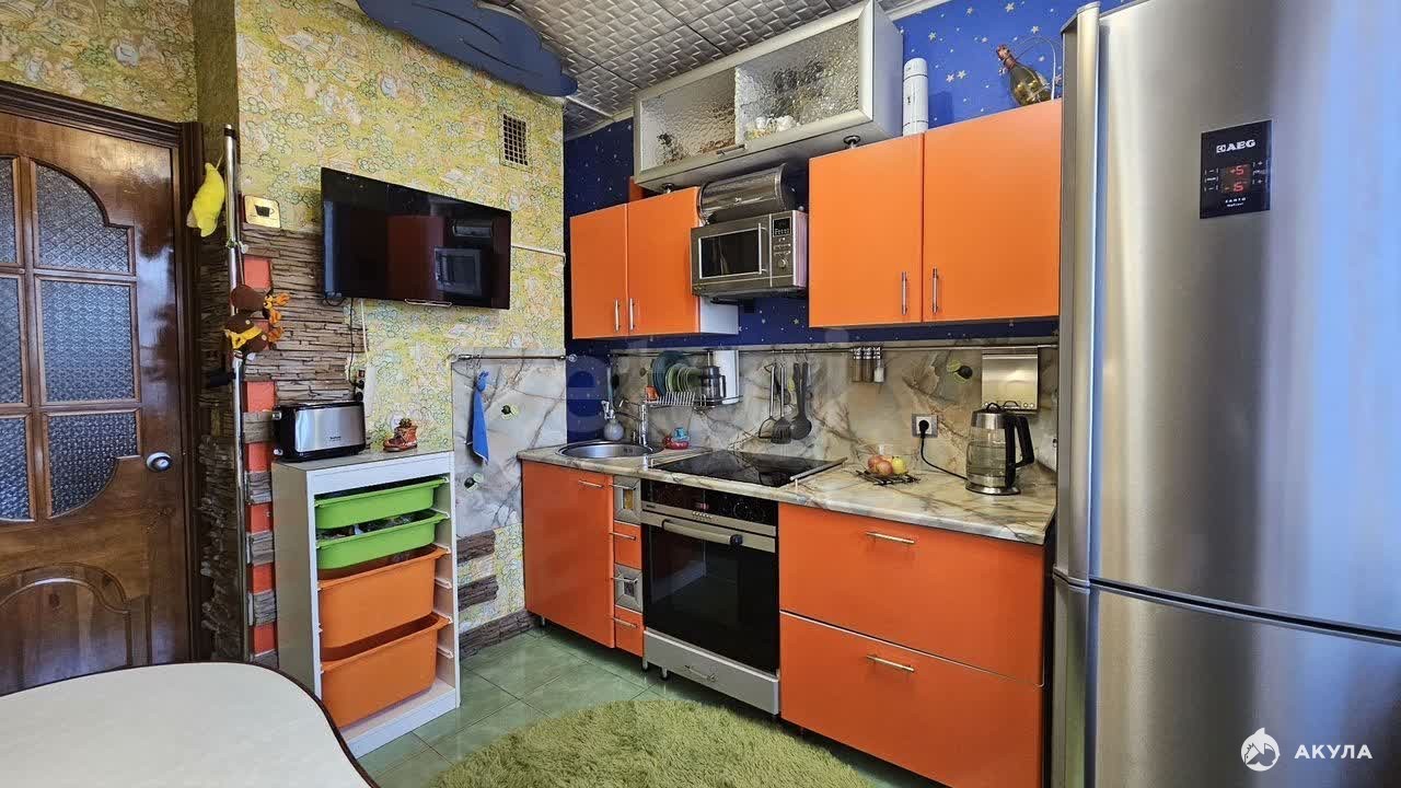 Две изолированные комнаты, большая лоджия. Сан. узел раздельный отделан плиткой. Оставим: кухонный гарнитур с варочной поверхностью, духовой шкаф, встроенный стол, полки, стиральную машину, гардеробную, телевизор в спальне, 2 дивана, стеллаж, комод, шкаф, видеопроектор с экраном, очиститель воздуха, ковры, шторы, люстры.