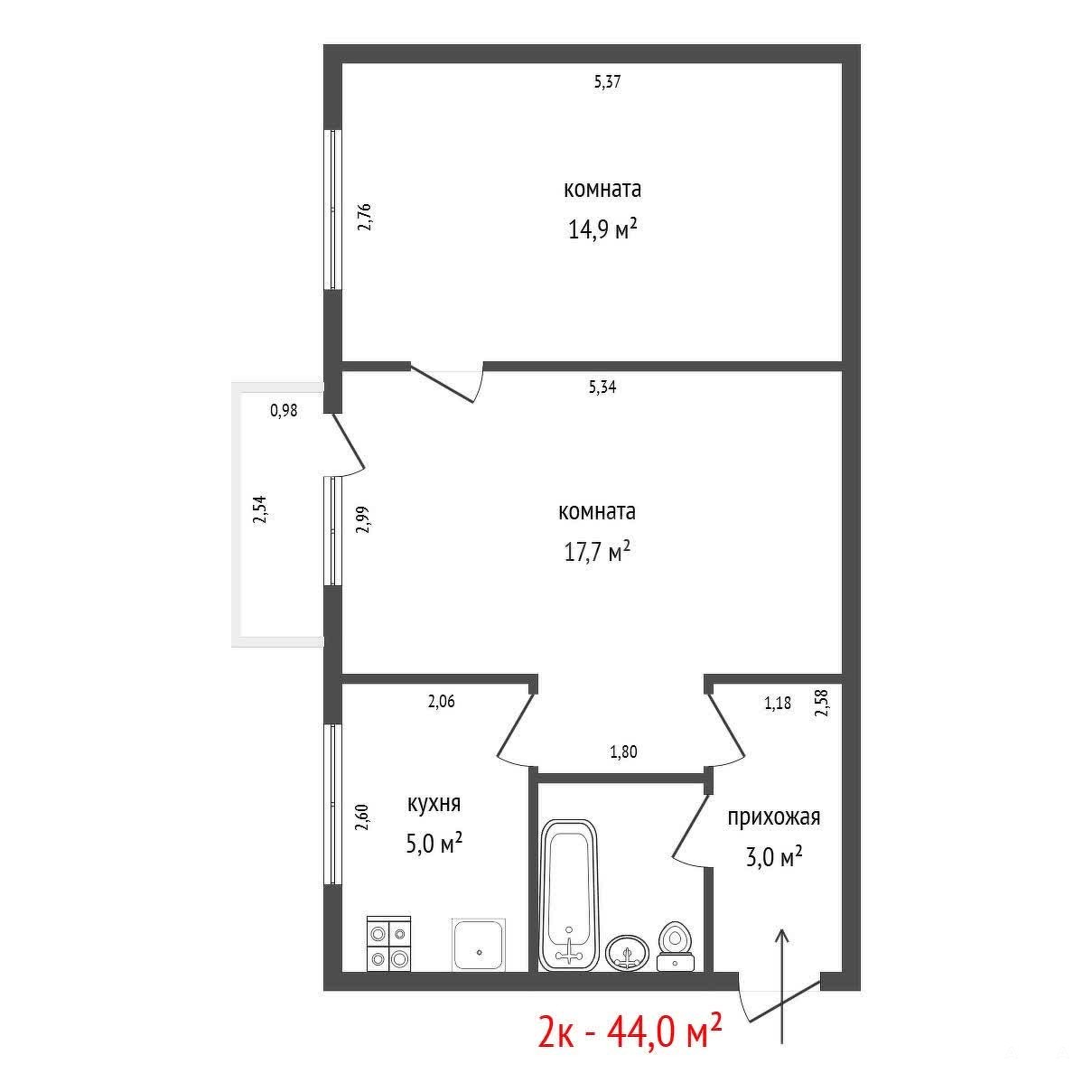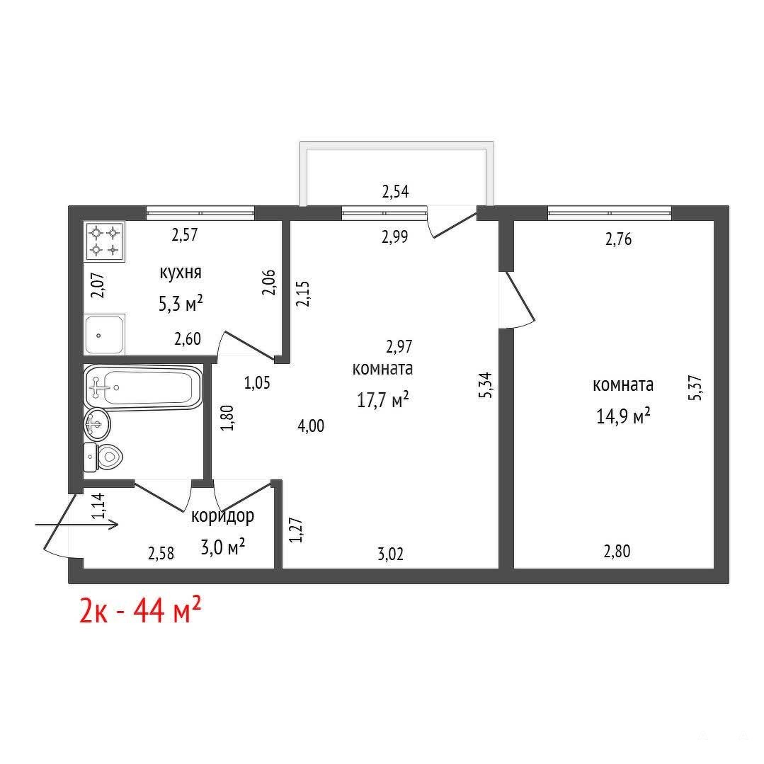 - 44 м²