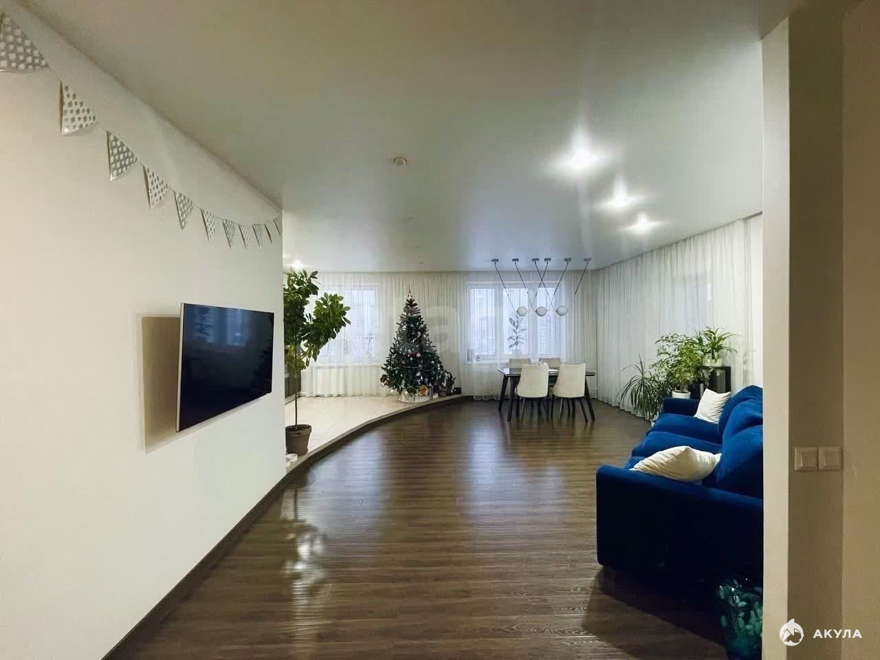 Продается просторная трехкомнатная квартира с панорамным остеклением и видом на город. Объект расположен в благоустроенном районе с полным набором повседневной инфраструктуры: в пешей доступности находятся супермаркеты, кафе, школы и детские сады, а также зеленые зоны — парк Маяковского и парк Паловика Морозова. Транспортная доступность отличная, с удобным выездом на основные магистрали. Планировка квартиры функциональна: изолированные спальни правильной формы и объединенное пространство кухни-гостиной, которое можно организовать под различные сценарии жизни. Дом содержится в идеальном порядке, обеспечен четырьмя лифтами, включая два грузовых. На огороженной и охраняемой территории расположены детская площадка, футбольный корт с искусственным покрытием и обширный наземный паркинг с выделенными гостевыми местами. Это предложение сочетает приватность, комфорт и выгодное расположение для жизни в городе.